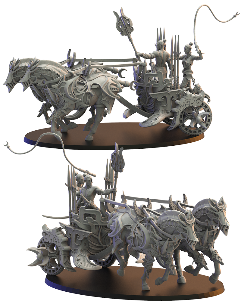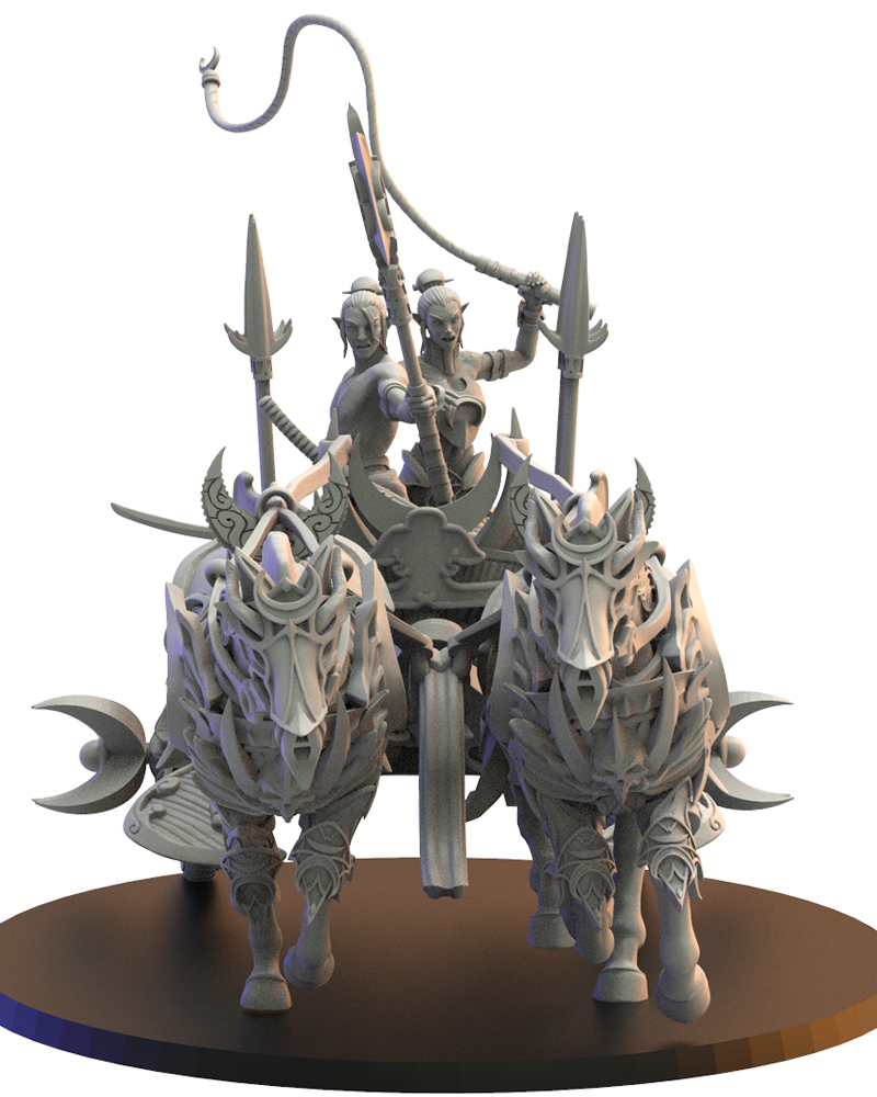 Oferujemy zestaw Hunting Chariot (Night Elves War Chariot od Lost Kingdom), wydrukowany na drukarce żywicznej w rozdzielczości 4k.