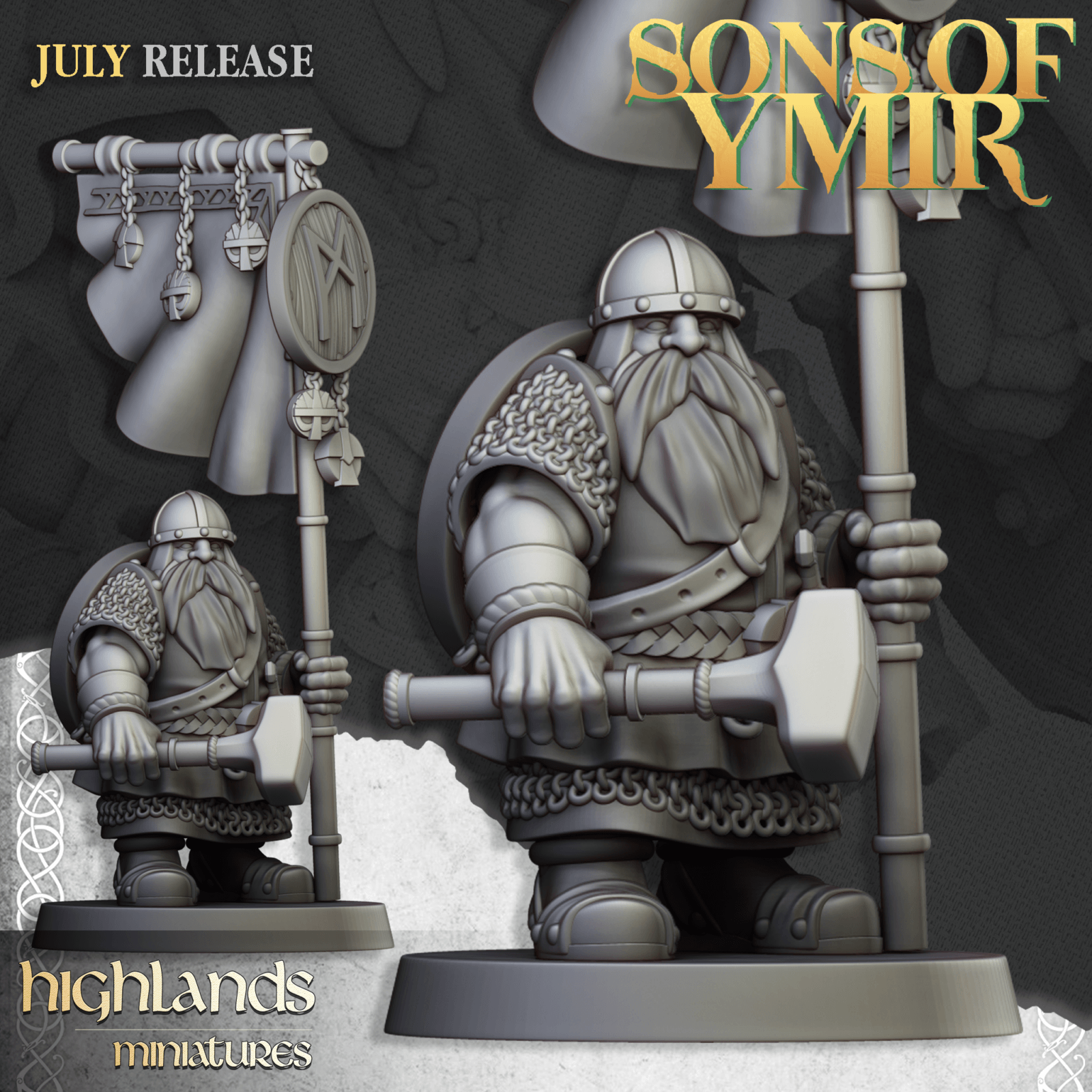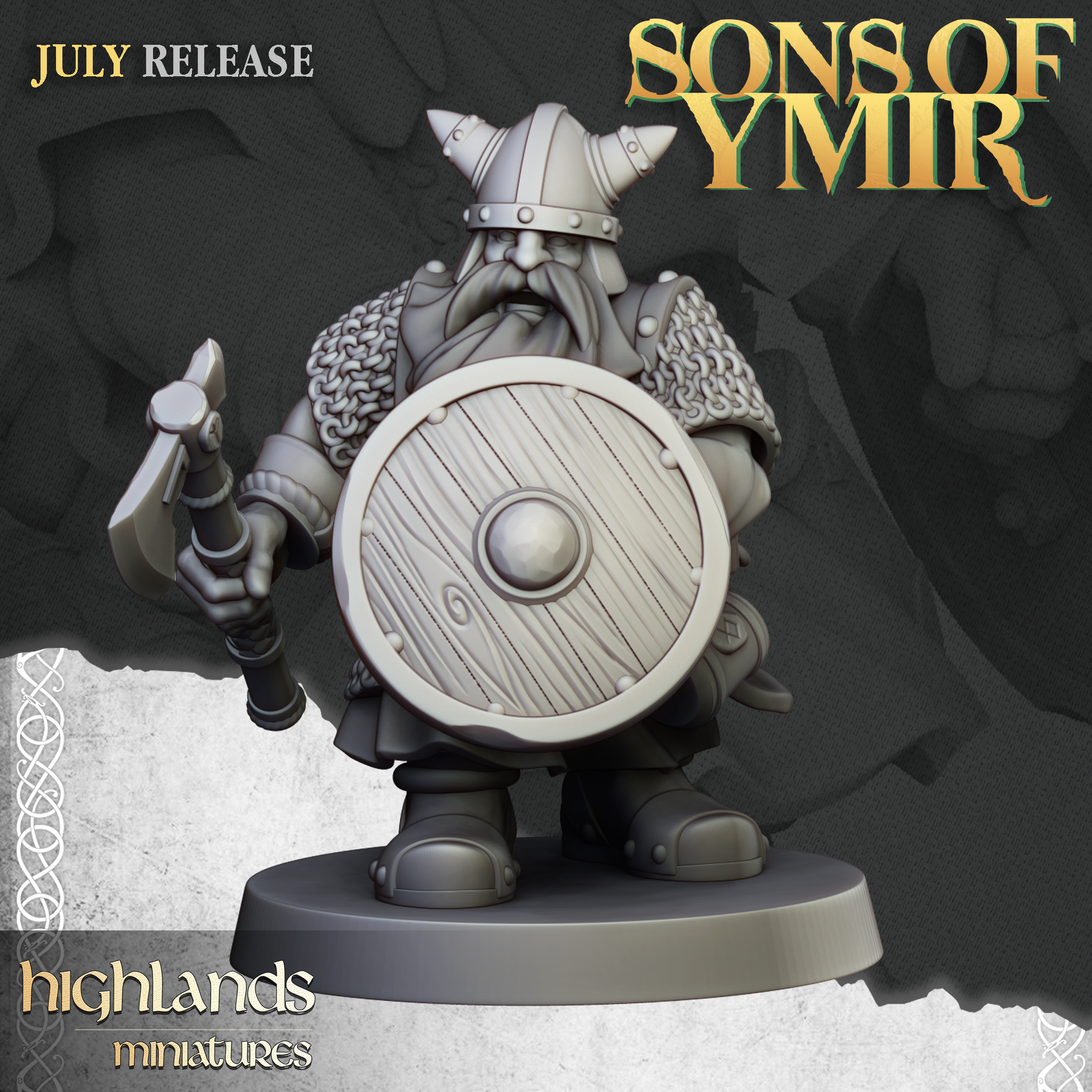 Oferujemy zestaw dziesięciu figurek Clan Warriors with hand weapons and shields (Dwarf Warriors with Shields od Highland Miniatures), wydrukowany na drukarce żywicznej w rozdzielczości 4k.