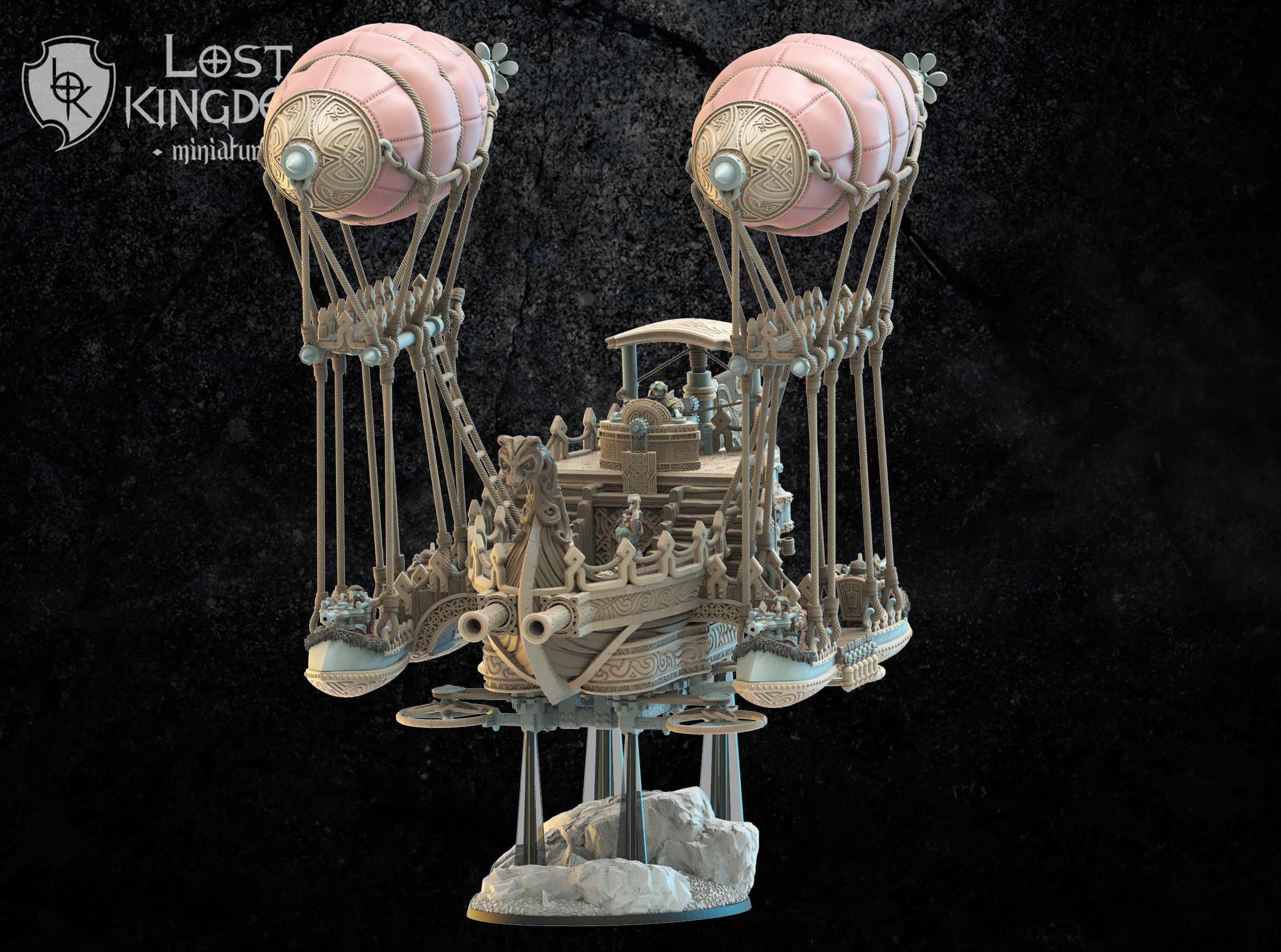 UWAGA: model wyceniony skali 28mm. Ma około 22 cm od lufy z przodu statku powietrznego do końca rufy i waży około 1,2kg. Przy odrobinie kreatywnego modelarstwa wsporniki da się przymocować do podstawki 50×100 mm.