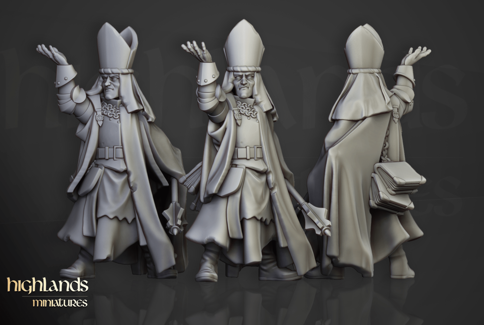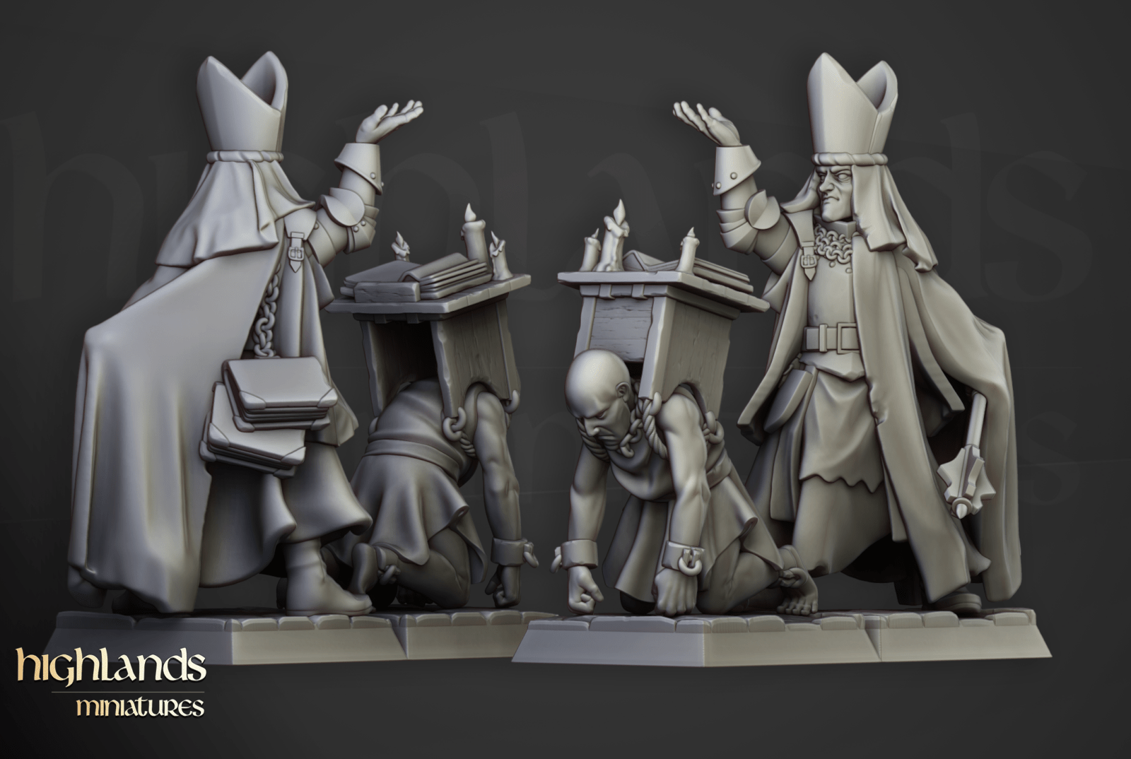 Oferujemy jedną figurkę High Inquisitor (High Inquisitor and servant od Highland Miniatures), wydrukowaną na drukarce żywicznej w rozdzielczości 4k.