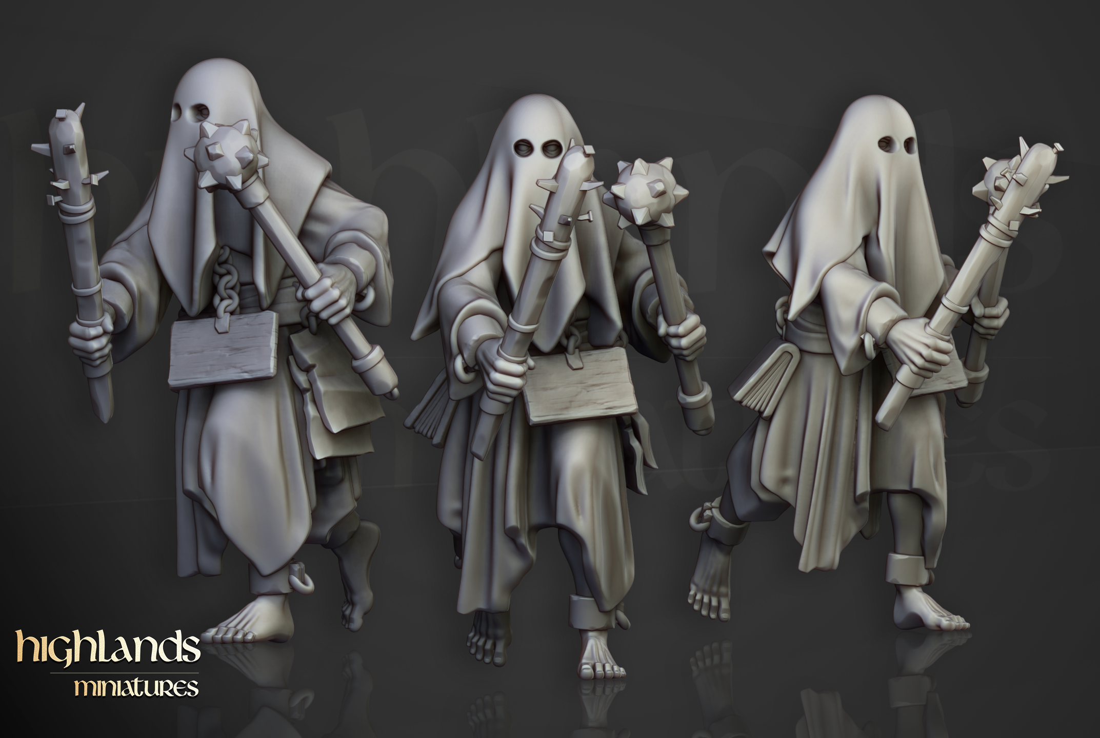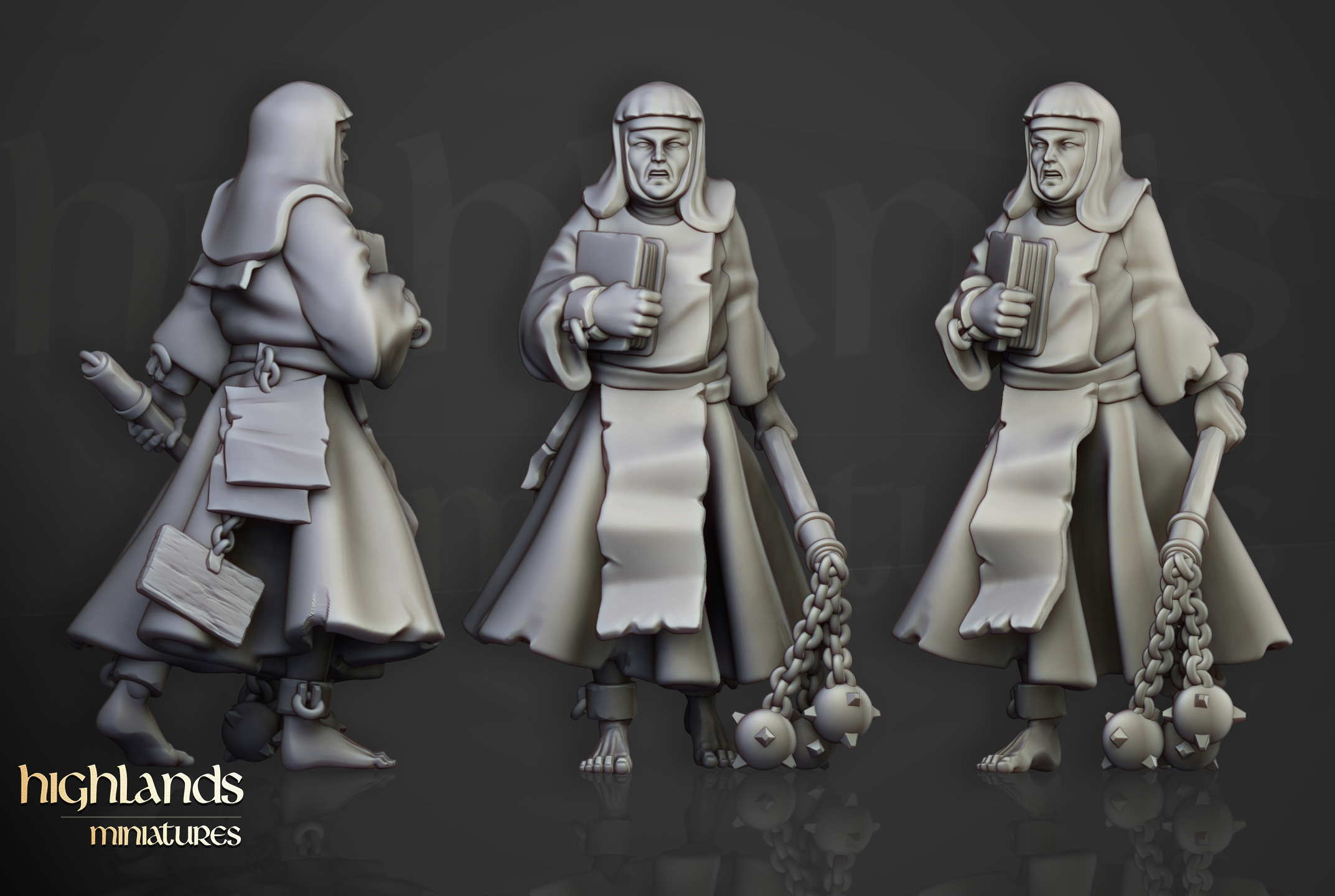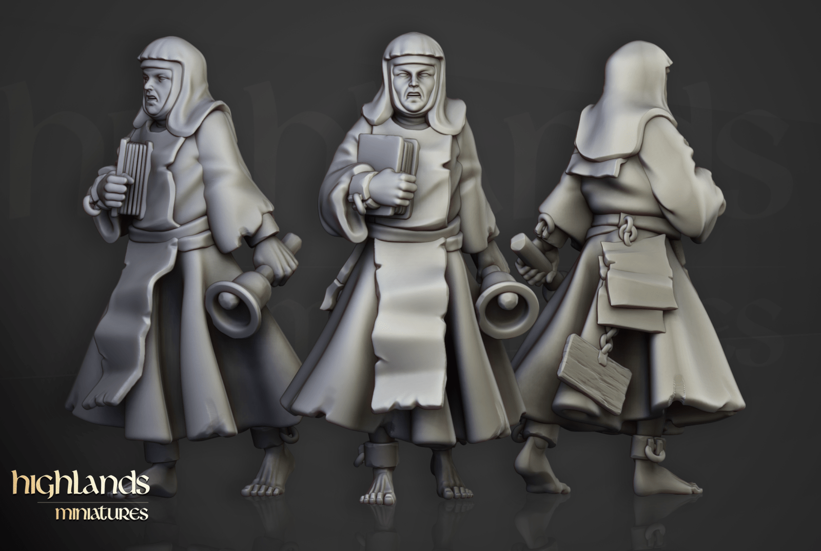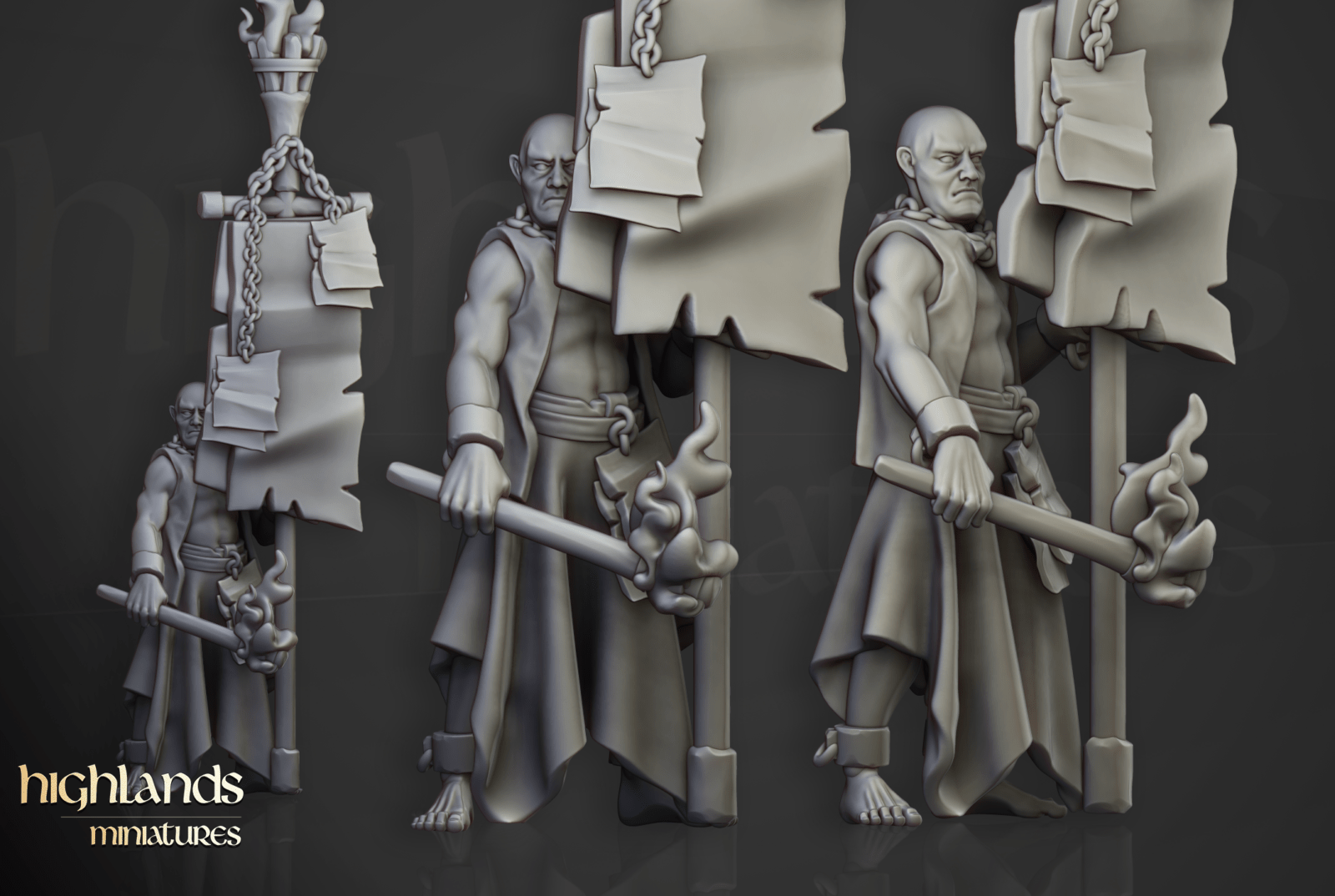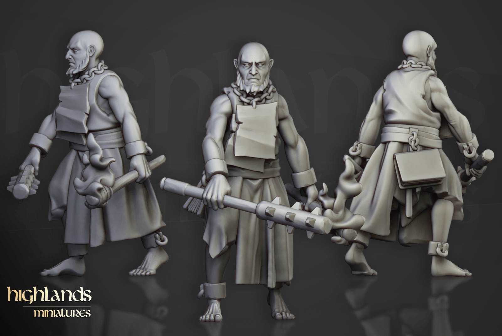 Oferujemy zestaw dziesięciu figurek Flagellants (Fanatical Zealots od Highland Miniatures), wydrukowany na drukarce żywicznej w rozdzielczości 4k.