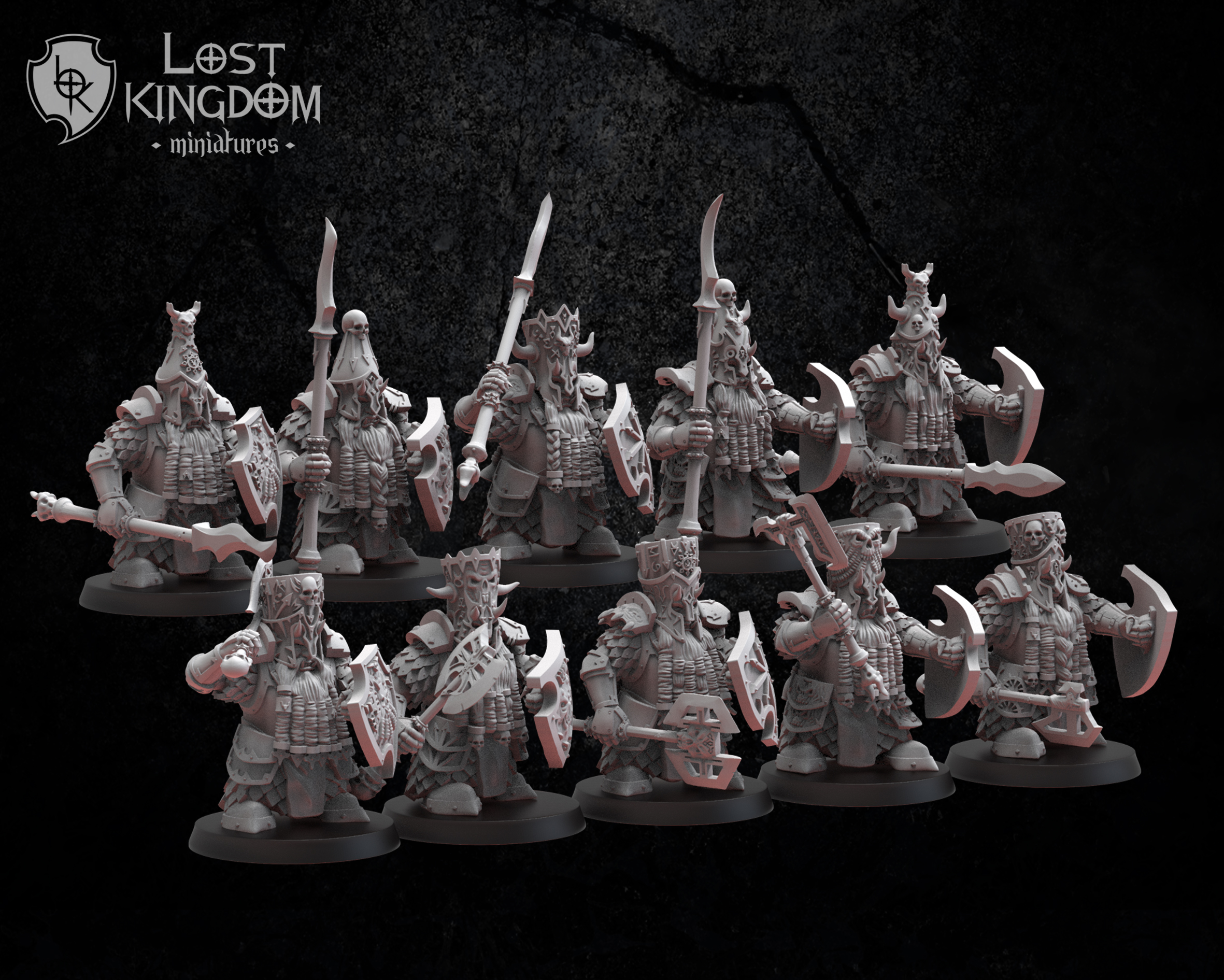 Oferujemy zestaw dziesięciu figurek Immortals / Infernal Warriors (Big Hats Elite Guard od Lost Kingdom), wydrukowany na drukarce żywicznej w rozdzielczości 4k.