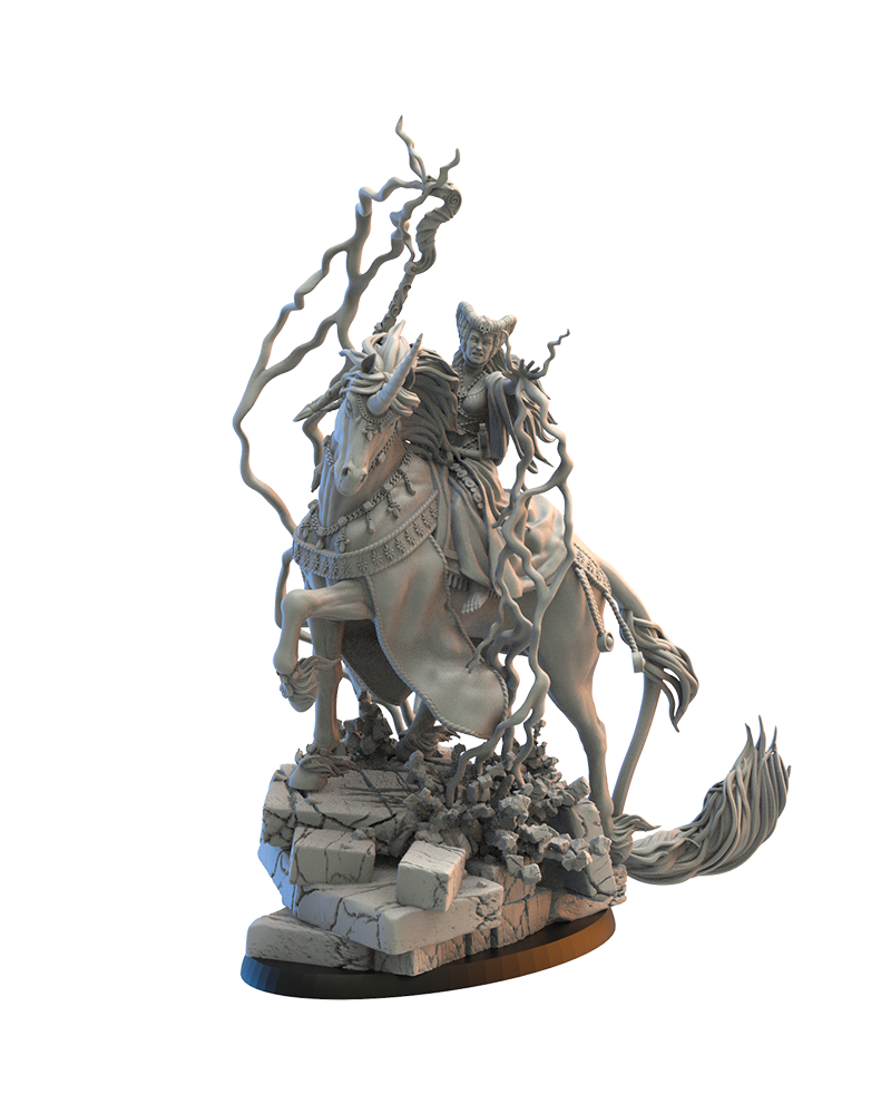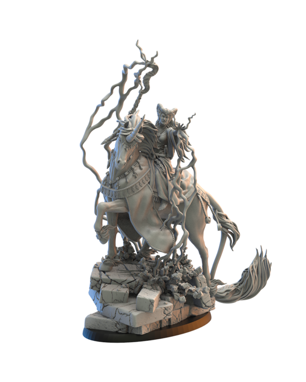 Oferujemy zestaw Damsel on Revered Unicorn (Ildira the Supreme Sorceress of Mercia od Lost Kingdom), wydrukowany na drukarce żywicznej w rozdzielczości 4k.