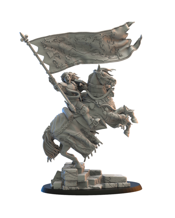 Oferujemy zestaw Equitan Lord Battle Standard Bearer (Mercia Standard Bearer od Lost Kingdom), wydrukowany na drukarce żywicznej w rozdzielczości 4k.