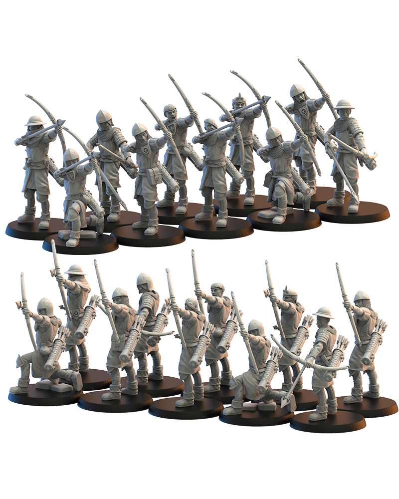 Oferujemy zestaw dziesięciu figurek Lowborn Archers (Bowmen on foot od Lost Kingdom), wydrukowany na drukarce żywicznej w rozdzielczości 4k.