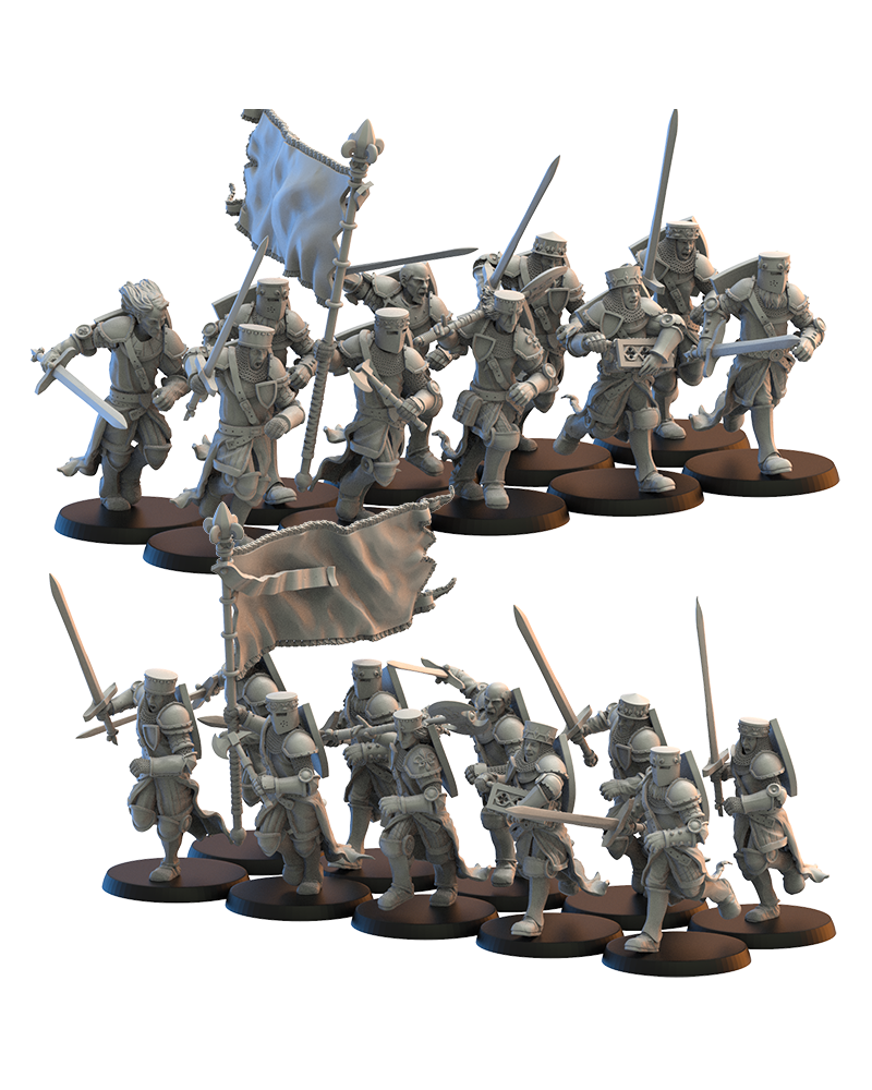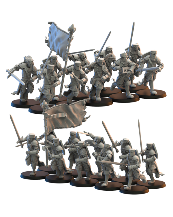 Oferujemy zestaw dziesięciu figurek Men-at-Arms (Rangers on foot od Lost Kingdom), wydrukowany na drukarce żywicznej w rozdzielczości 4k.