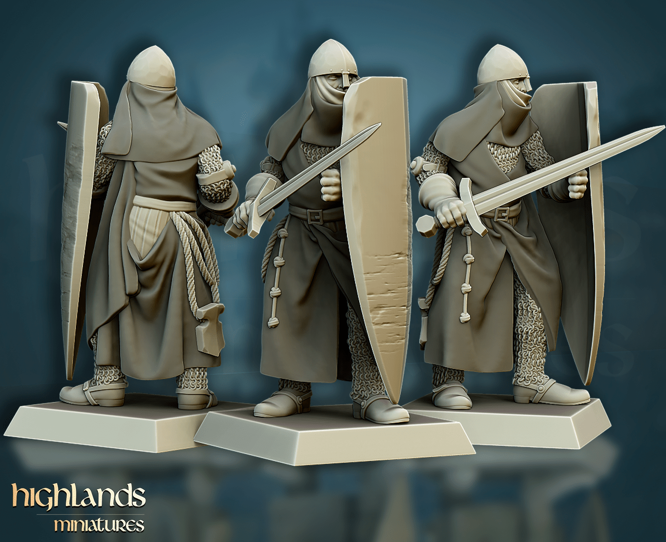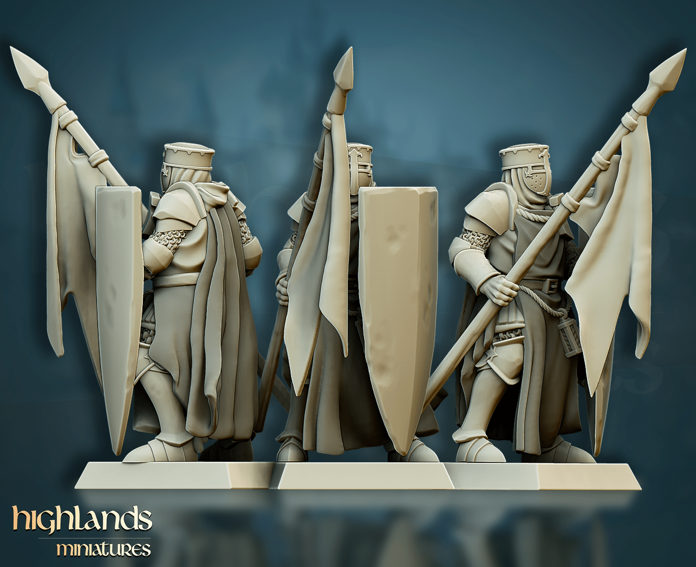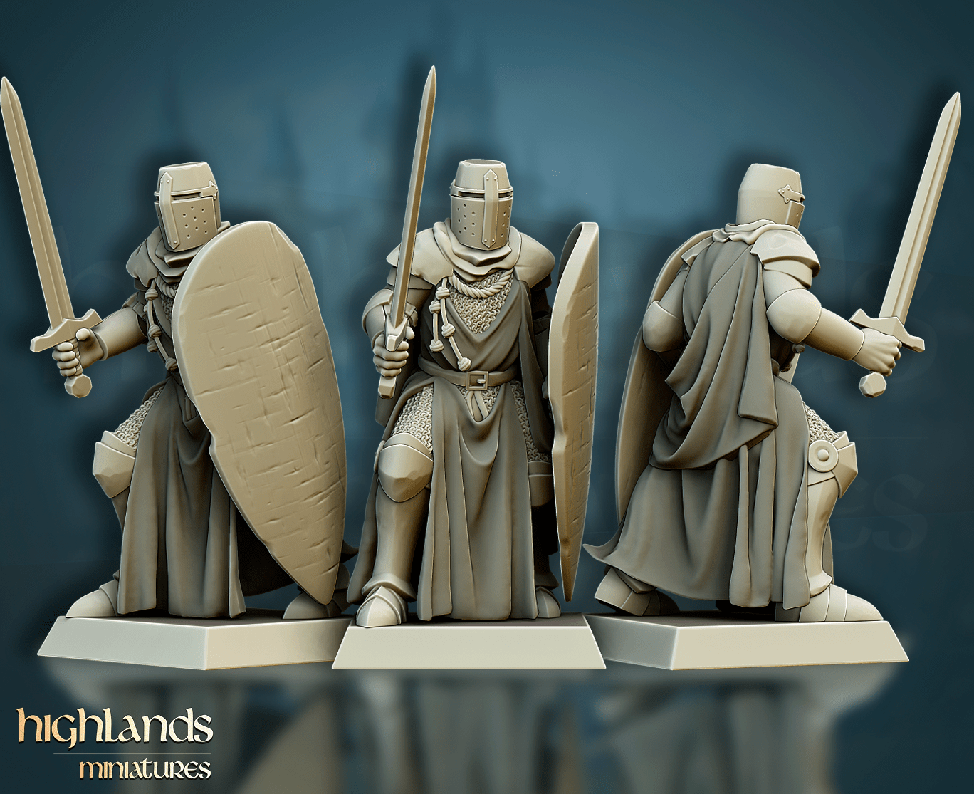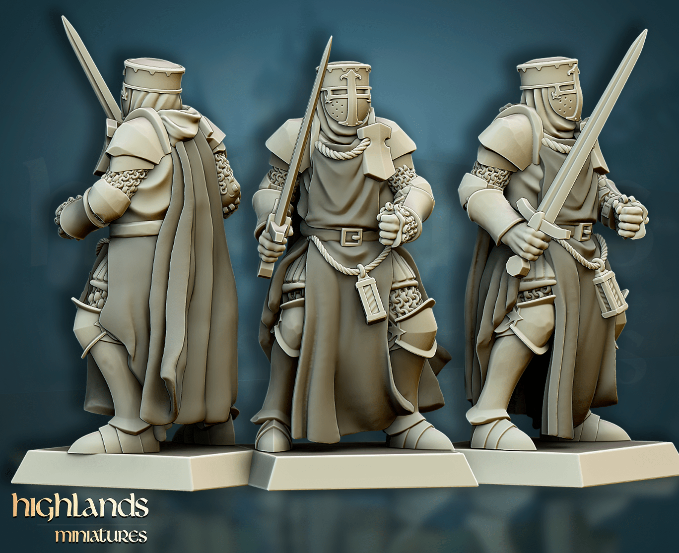 Oferujemy zestaw dziesięciu figurek Men-At-Arms (Crusader Knights od Highland Miniatures), wydrukowany na drukarce żywicznej w rozdzielczości 4k.