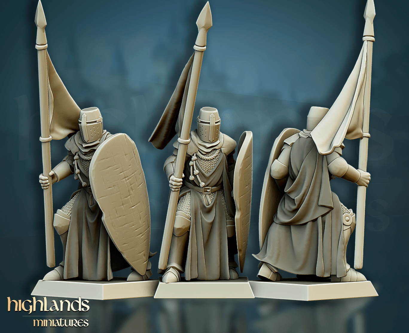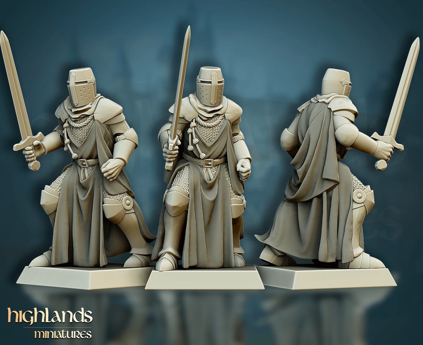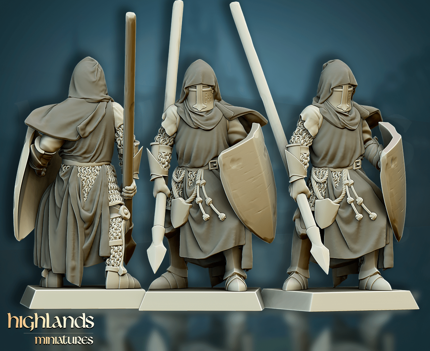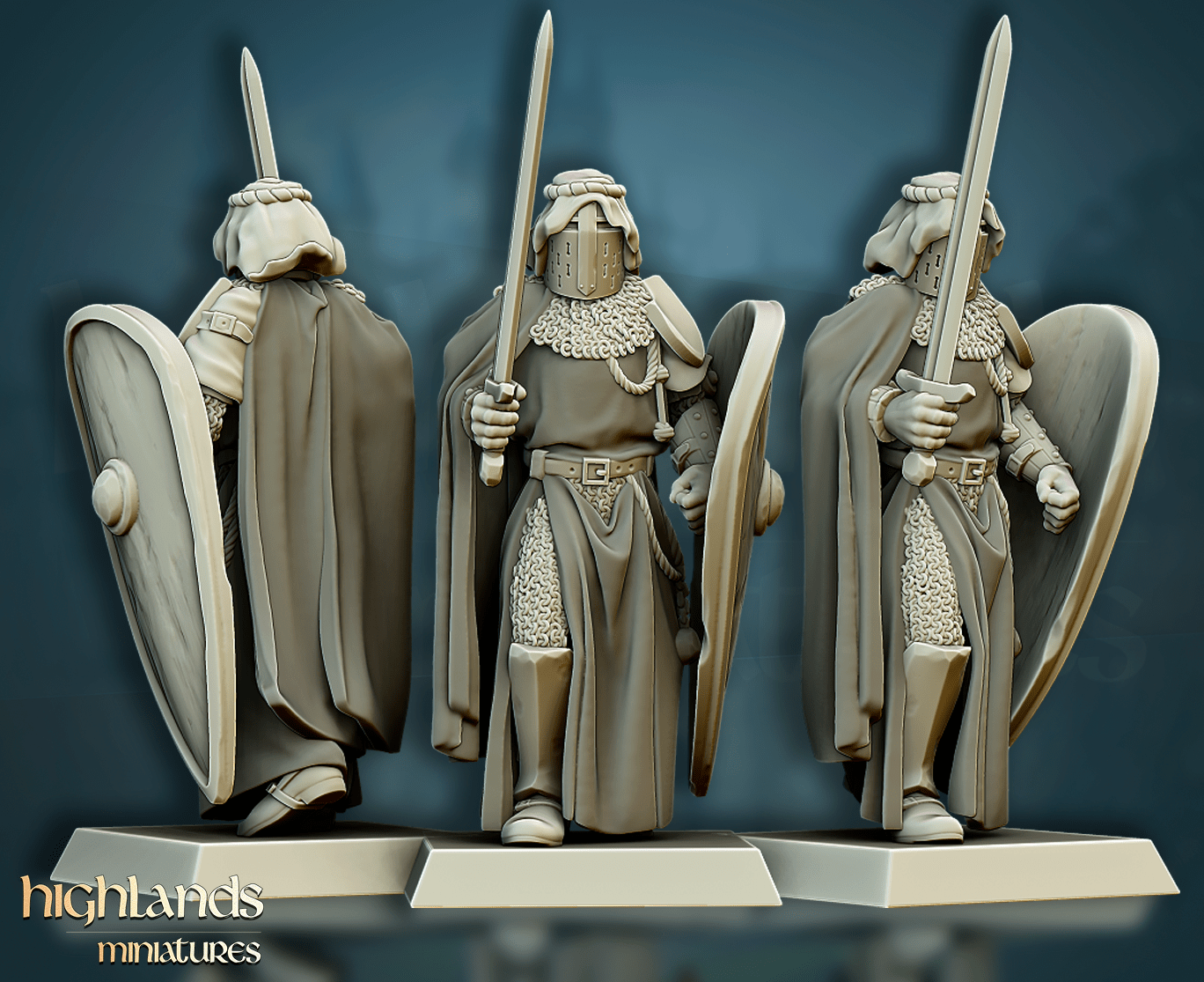 Oferujemy zestaw dziesięciu figurek Men-At-Arms (Crusader Knights od Highland Miniatures), wydrukowany na drukarce żywicznej w rozdzielczości 4k.