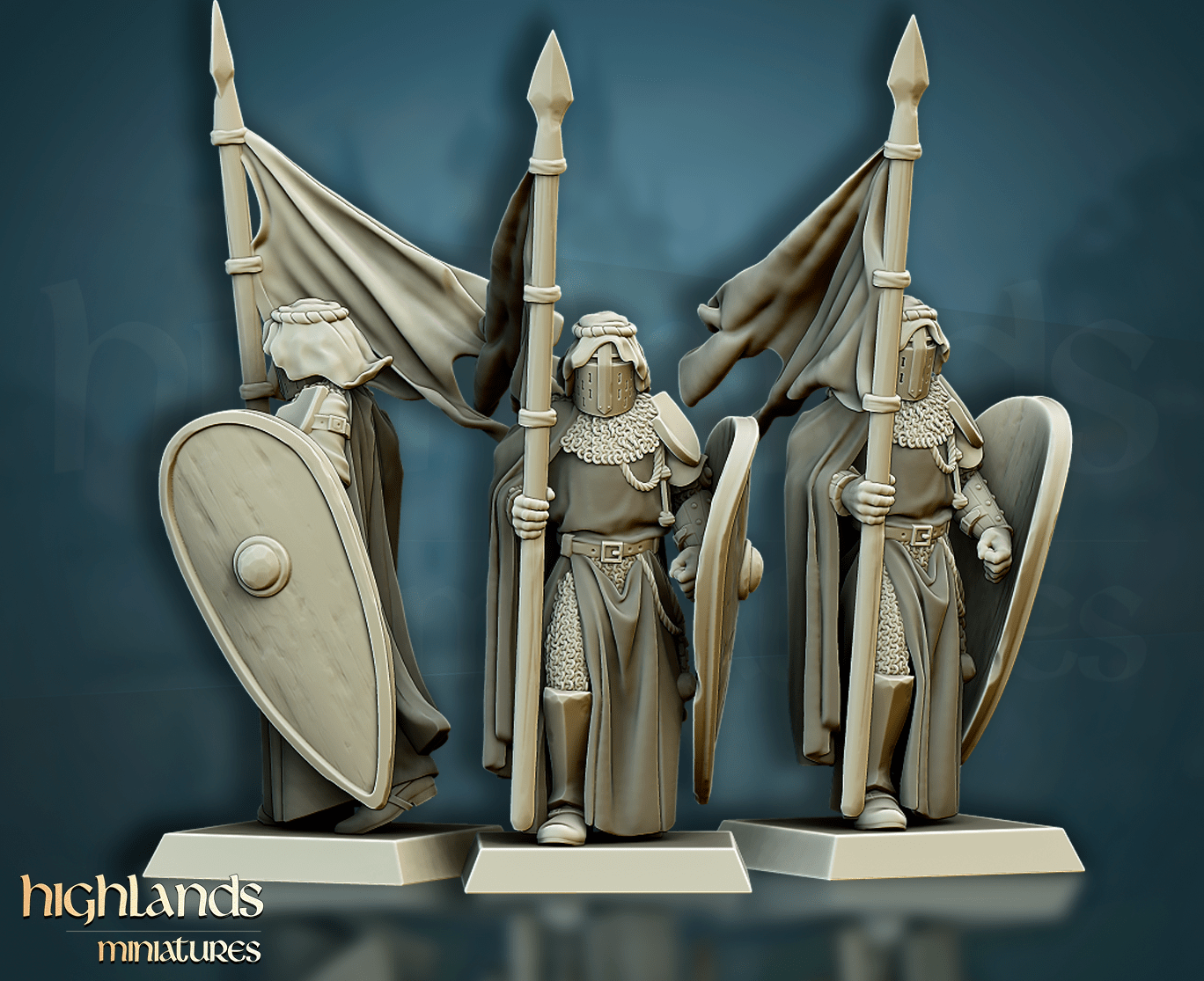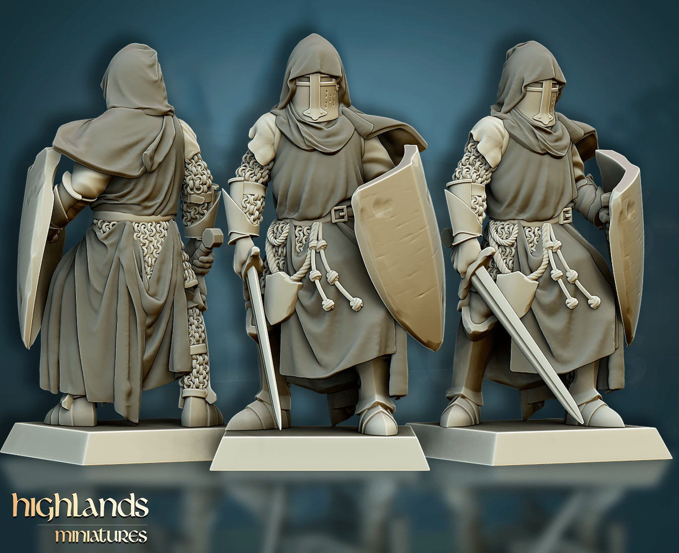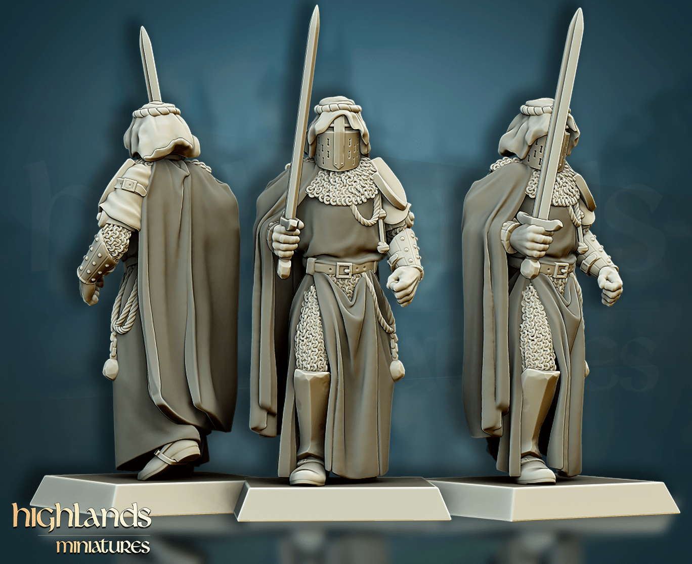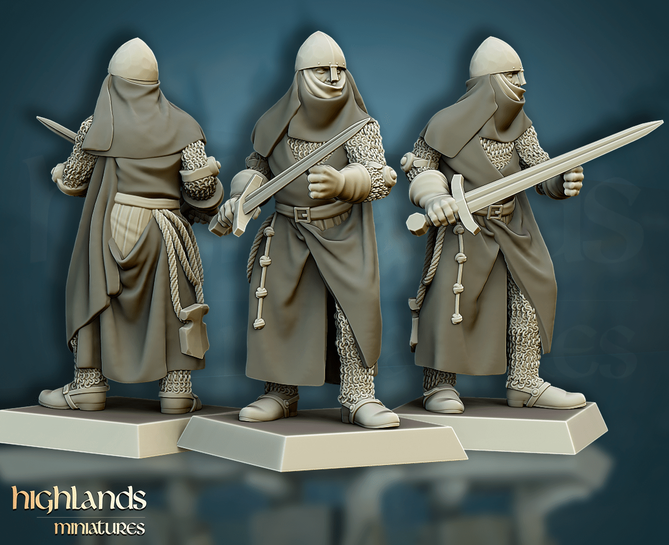 Oferujemy zestaw dziesięciu figurek Men-At-Arms (Crusader Knights od Highland Miniatures), wydrukowany na drukarce żywicznej w rozdzielczości 4k.