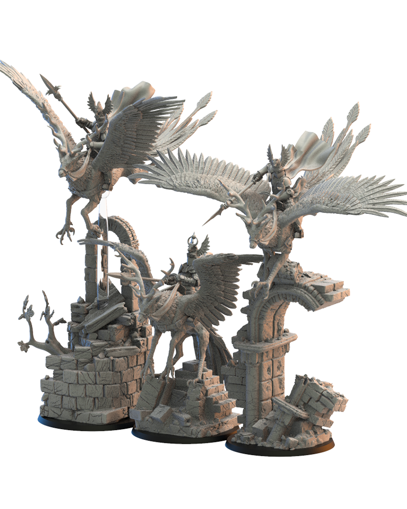 Oferujemy zestaw trzech figurek Pegasus Knights (Wind Knights with Alternative Mounts od Lost Kingdom), wydrukowany na drukarce żywicznej w rozdzielczości 4k.