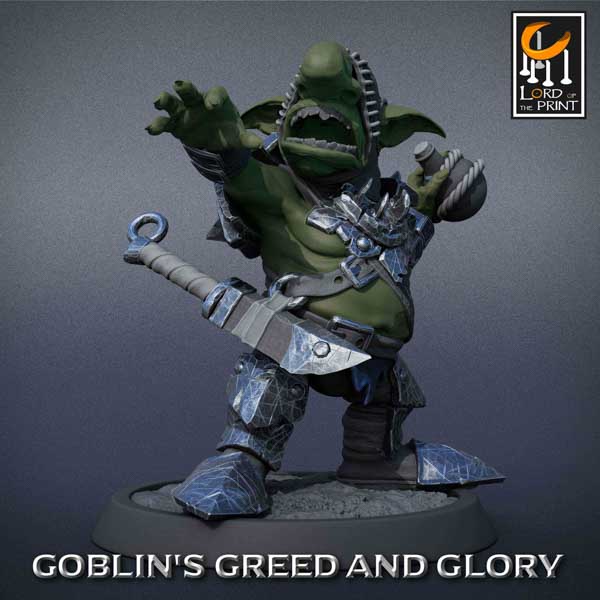 Oferujemy zestaw 10 figurek Goblin Alchemists (Goblin Alchemists Pack od Lord of the Print), wydrukowany na drukarce żywicznej.