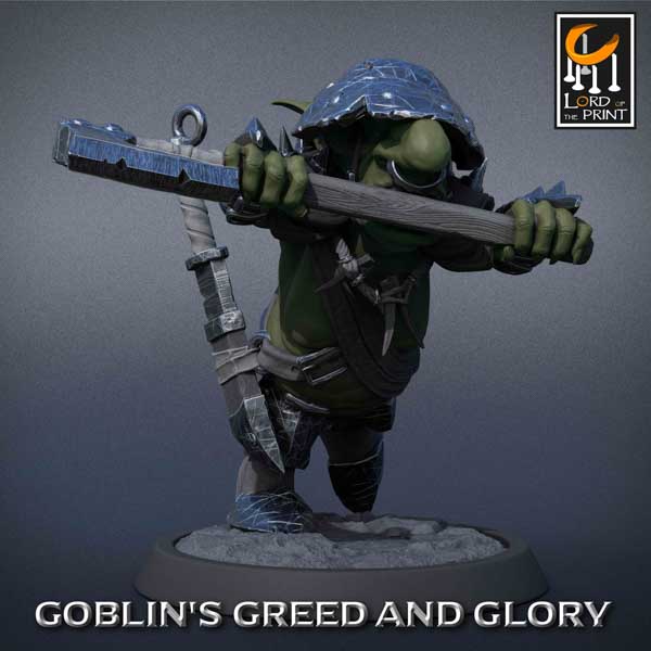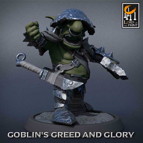 Oferujemy zestaw 10 figurek Goblin Warlike Pack od Lord of the Print, wydrukowany na drukarce żywicznej.