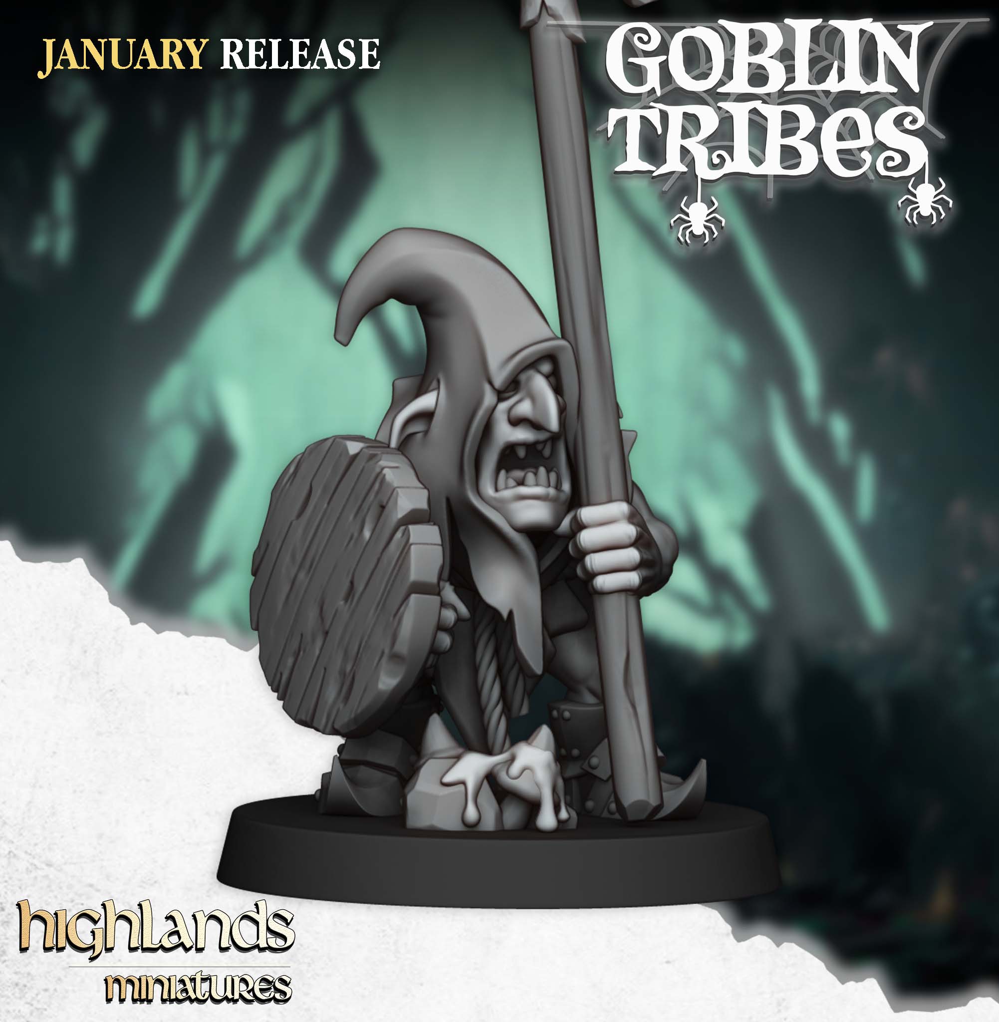 Oferujemy zestaw dziesięciu figurek Swamp Goblins with Pikes od Highlands Miniatures, wydrukowany na drukarce żywicznej.