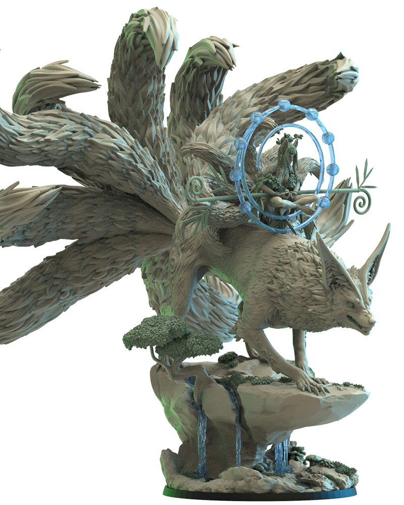 Oferujemy zestaw Hanako, Kitsune Druid Kyubi od Lost Kingdom, wydrukowany na drukarce żywicznej.