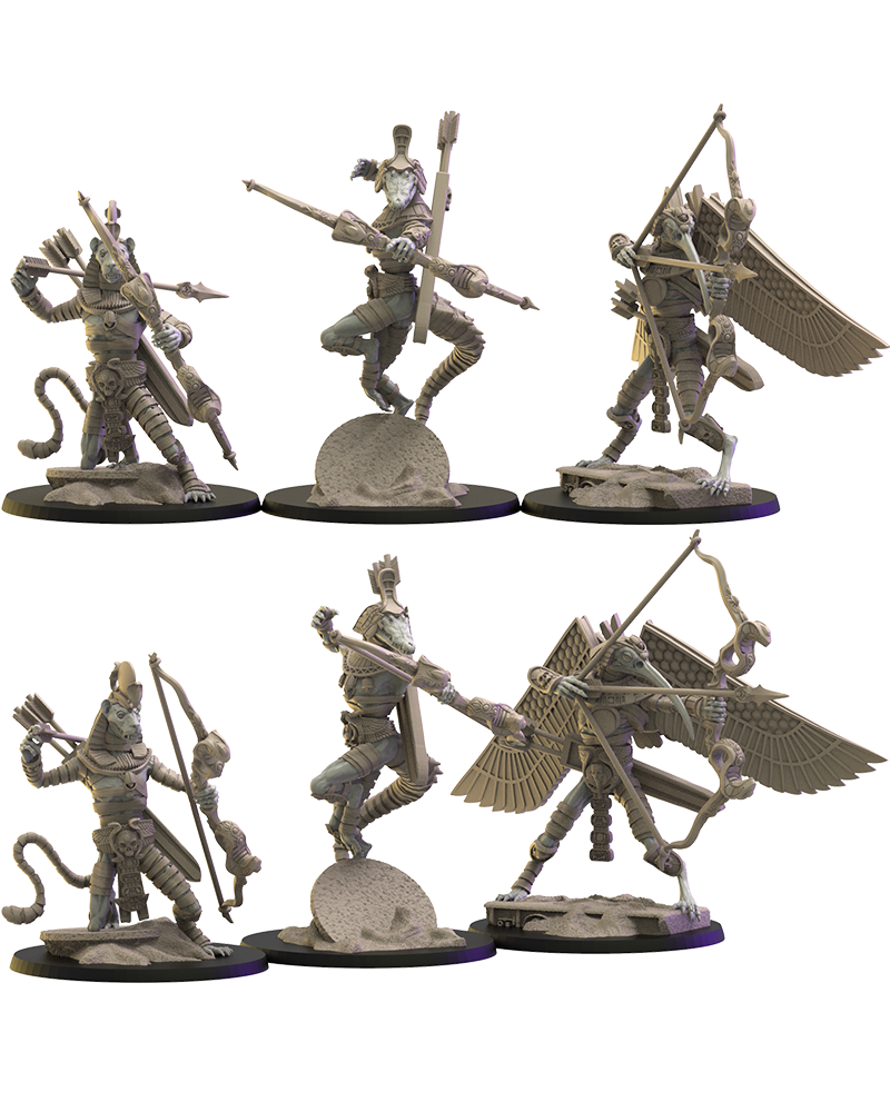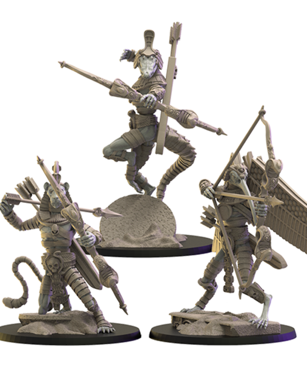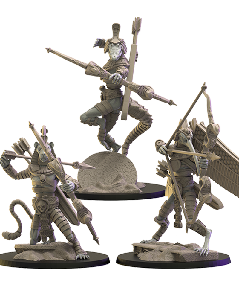 Oferujemy zestaw trzech figurek Shabti Archers (Canopic Guard With Bows od Lost Kingdom), wydrukowany na drukarce żywicznej w rozdzielczości 4k.