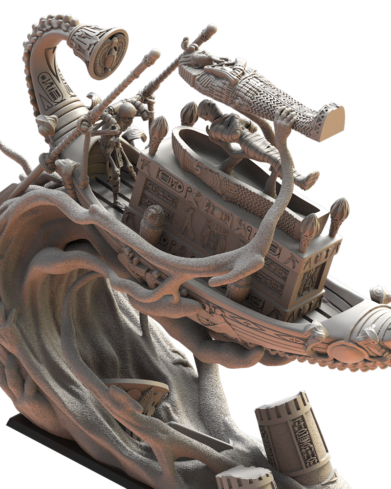 Oferujemy zestaw Casket of Phatep (Kufu Ship od Lost Kingdom), wydrukowany na drukarce żywicznej w rozdzielczości 4k.