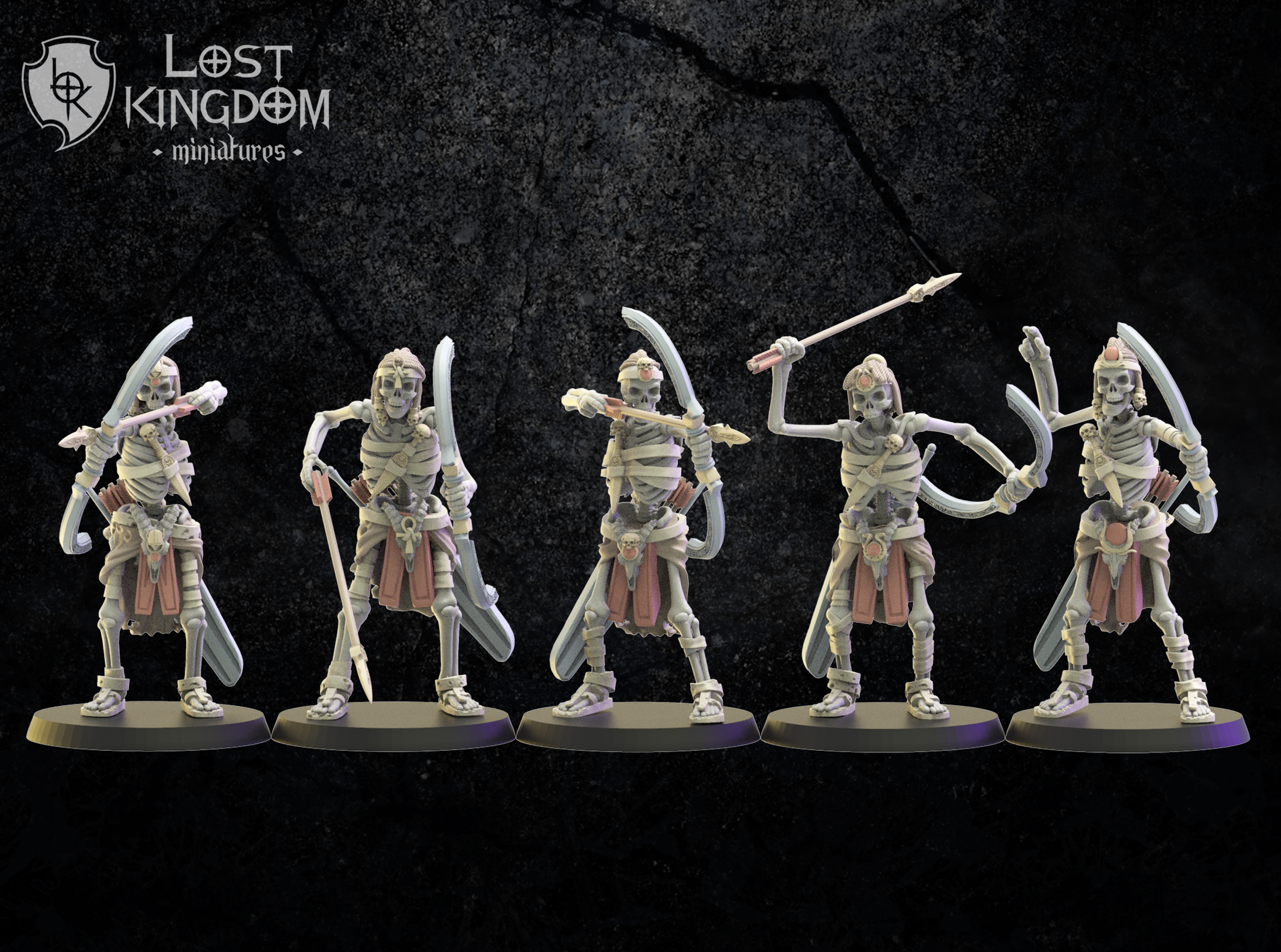 Oferujemy zestaw dziesięciu figurek Skeleton Archers (Khnum Archers od Lost Kingdom), wydrukowany na drukarce żywicznej w rozdzielczości 4k.