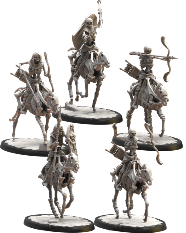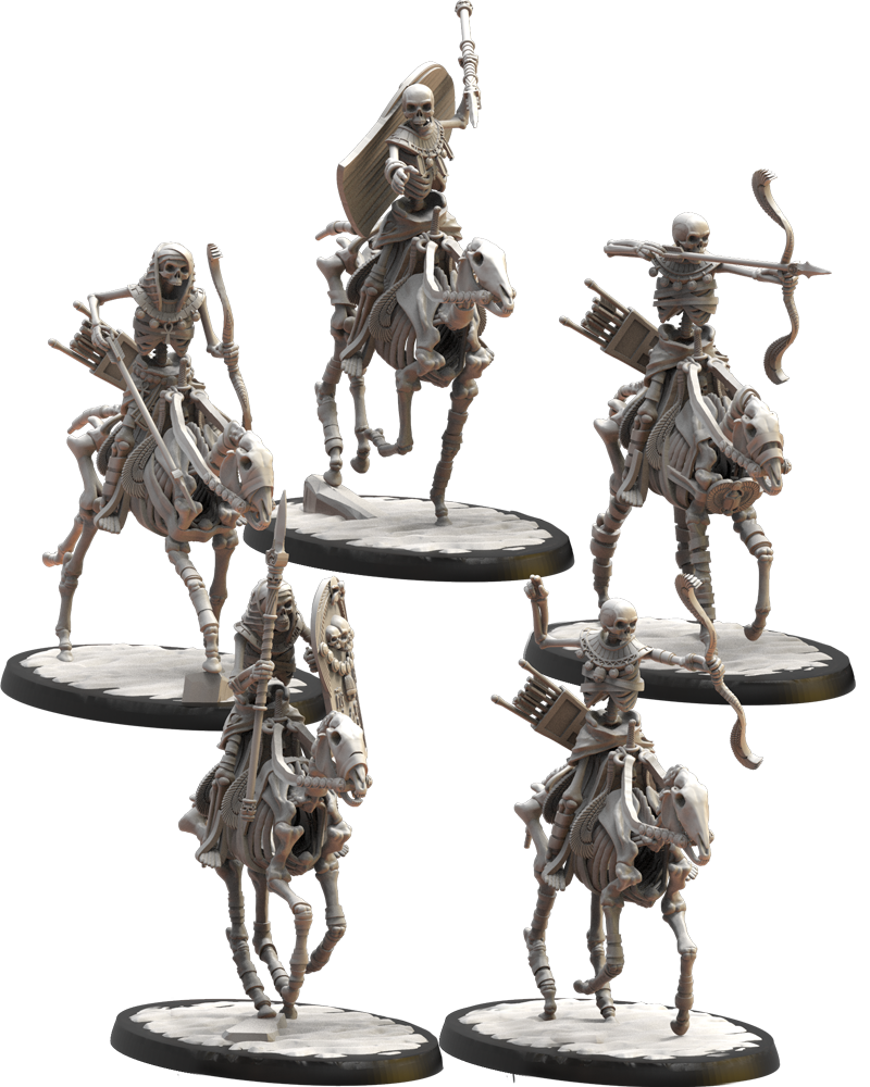 Oferujemy zestaw pięciu figurek Skeleton Cavalry (Second Dynasty Knights od Lost Kingdom), wydrukowany na drukarce żywicznej w rozdzielczości 4k.