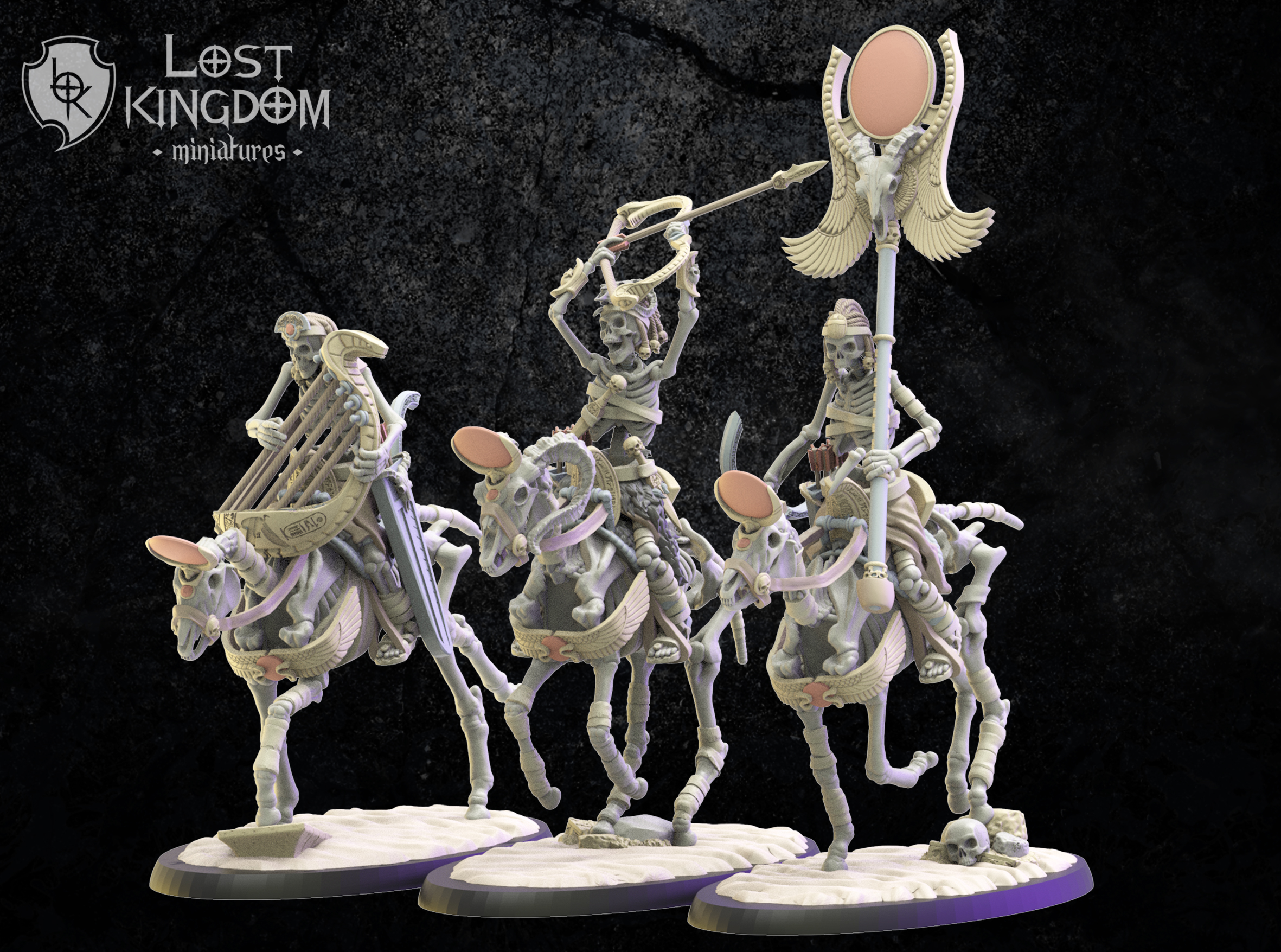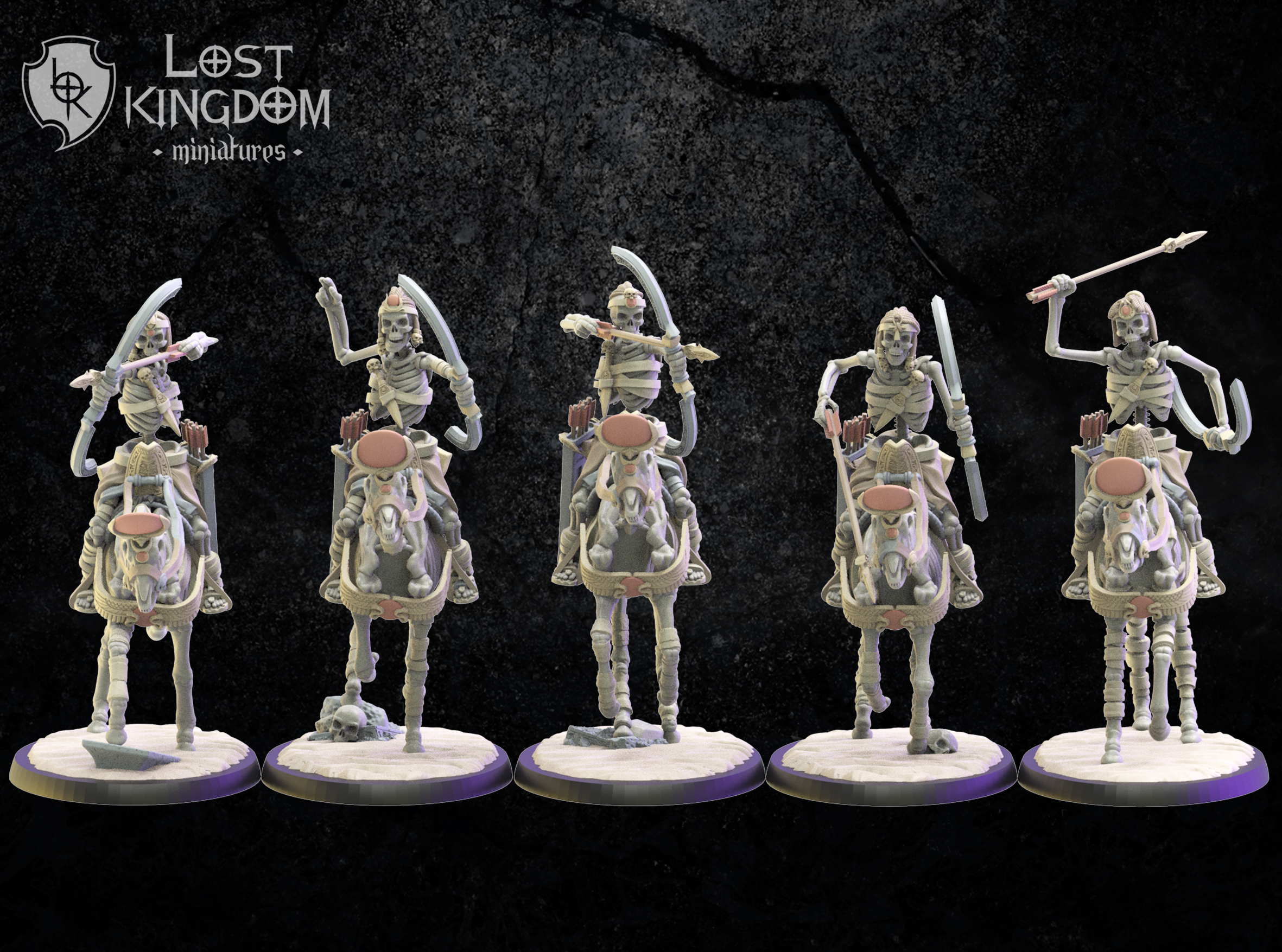 Oferujemy zestaw pięciu figurek Skeleton Scouts (Khnum Riders od Lost Kingdom), wydrukowany na drukarce żywicznej w rozdzielczości 4k.