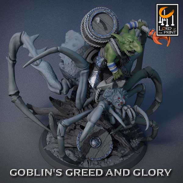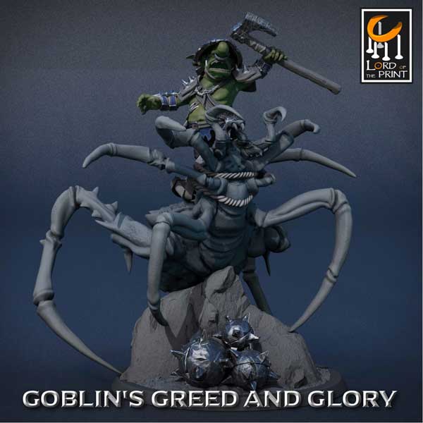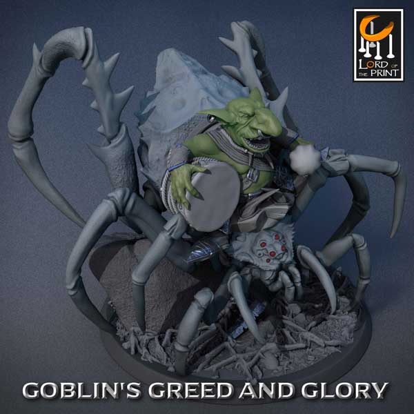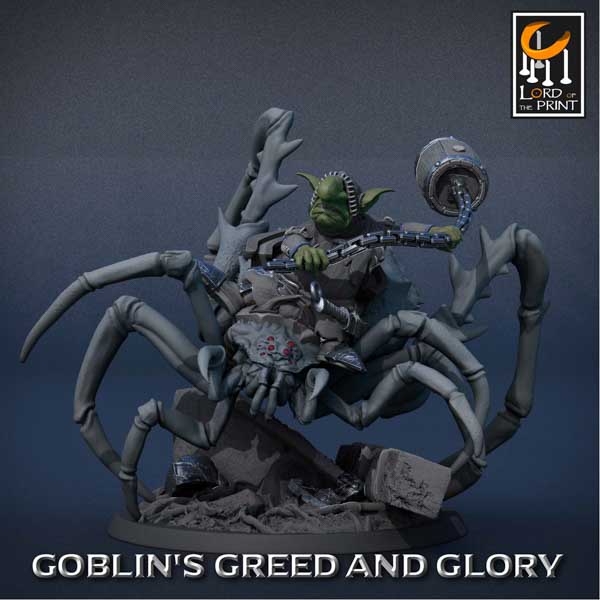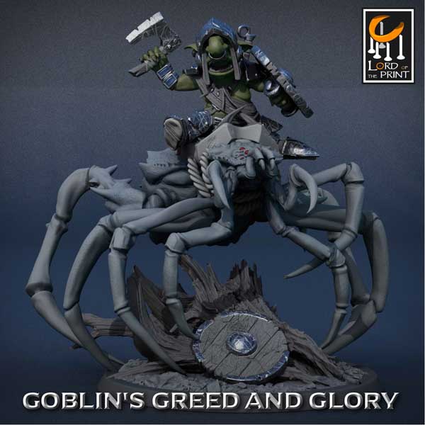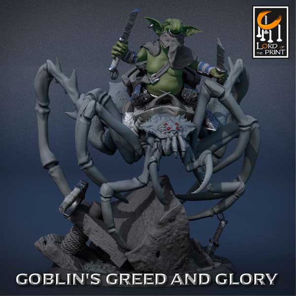 Oferujemy zestaw 3 figurki Goblin Spider Pack od Lord of the Print, wydrukowany na drukarce żywicznej.