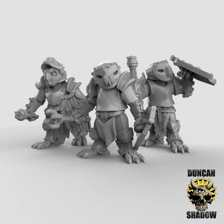 Oferujemy zestaw dziesięciu figurek Armoured Owls with maces and shields od Duncan Shadow, wydrukowany na drukarce żywicznej.