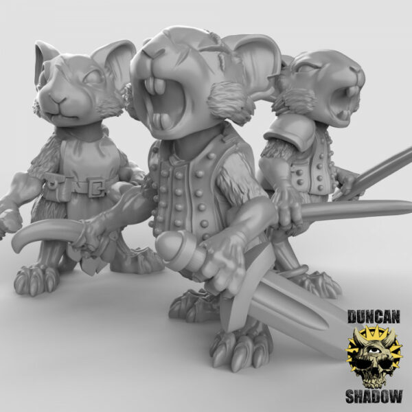 Oferujemy zestaw 10 figurek Mousle Rangers with Daggers od Duncan Shadow, wydrukowany na drukarce żywicznej.