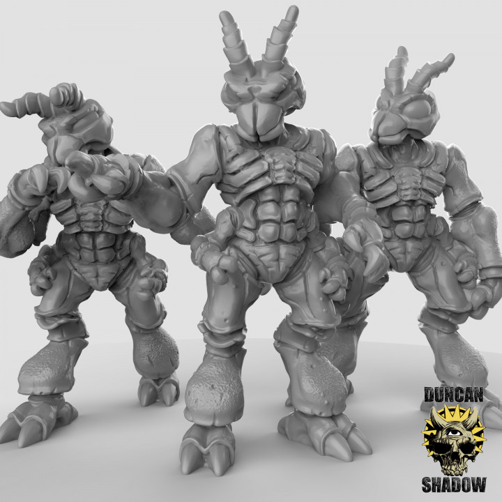 Oferujemy 10 figurek Thri-Kreen od Duncan Shadow, wydrukowaną na drukarce żywicznej.