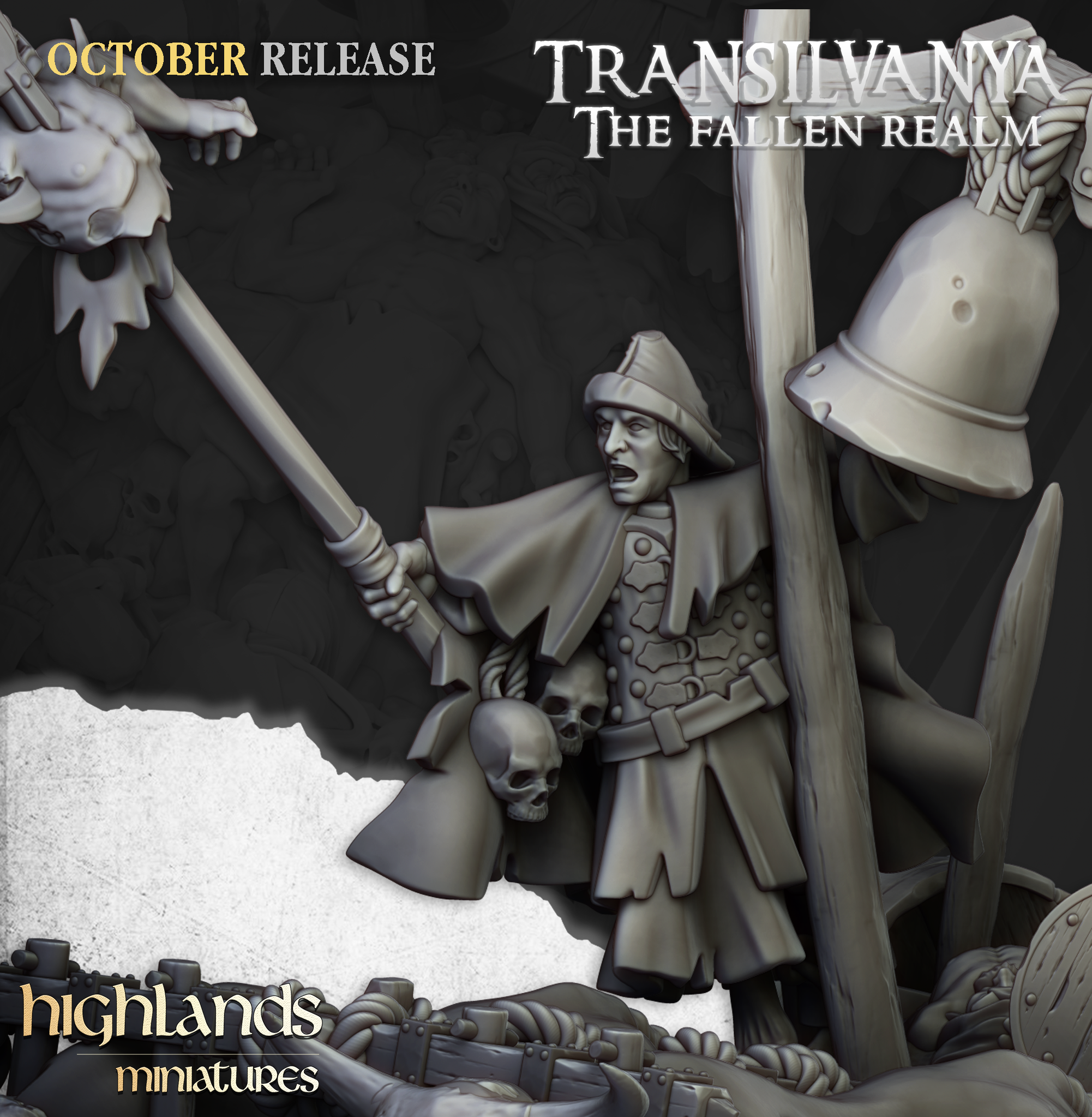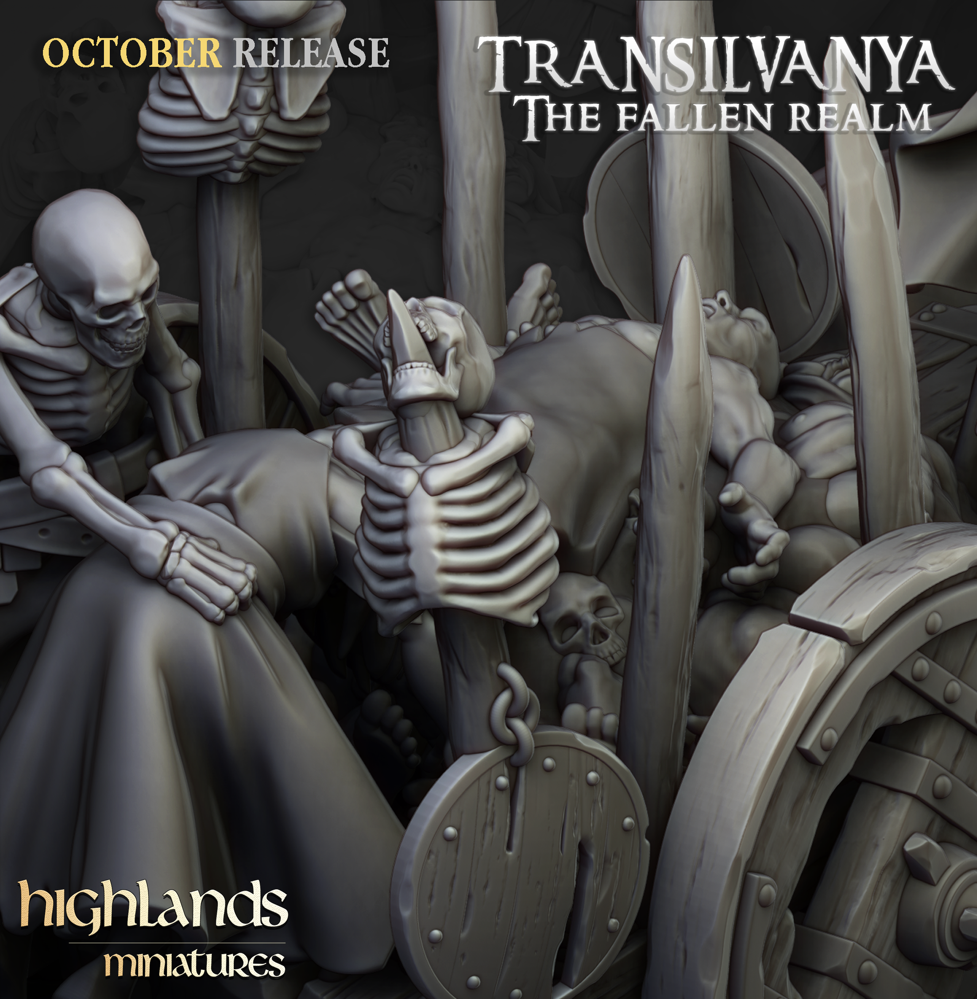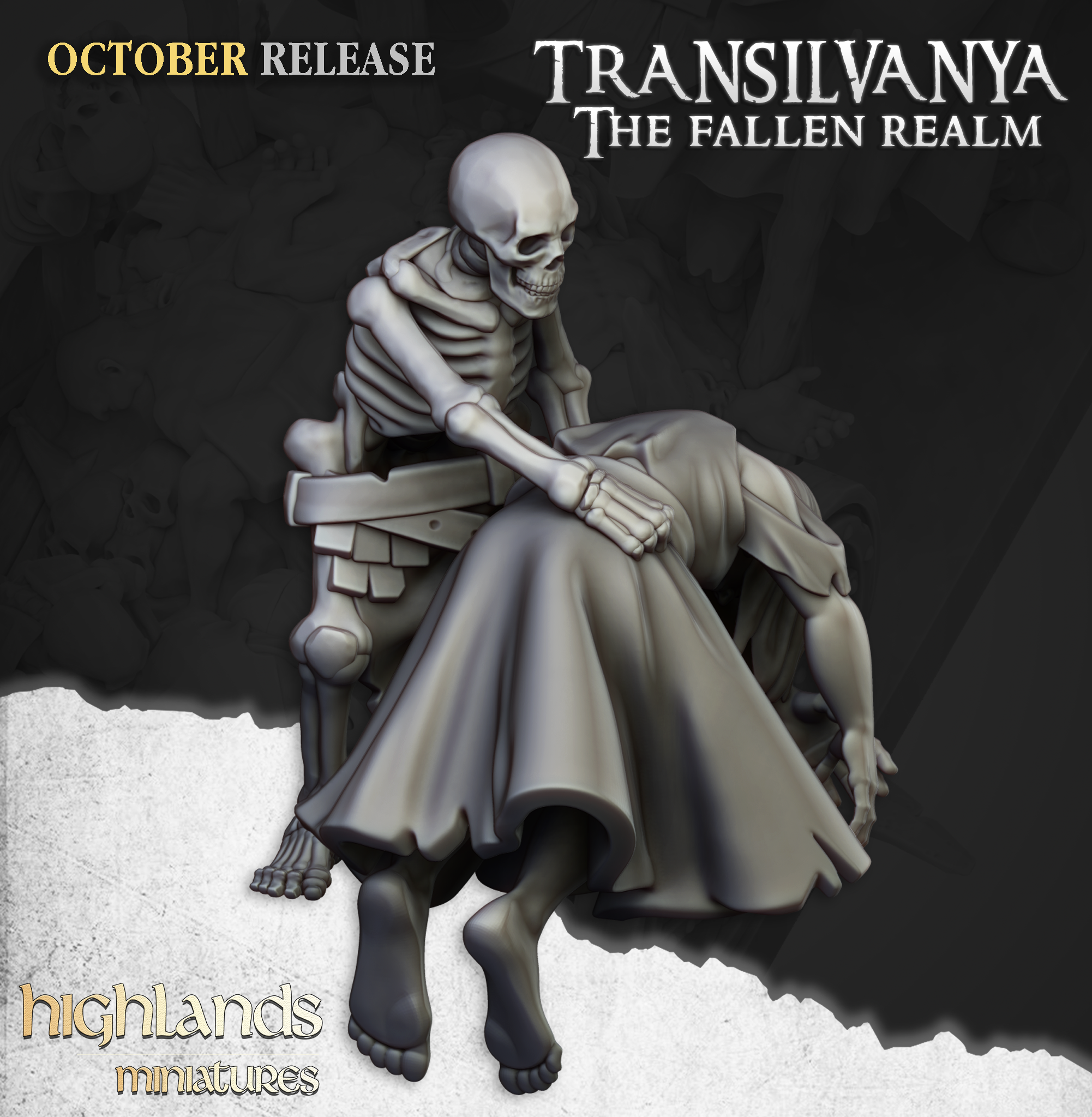 Oferujemy zestaw Cadaver Wagon (Corpse Cart od Highland Miniatures), wydrukowany na drukarce żywicznej w rozdzielczości 4k.