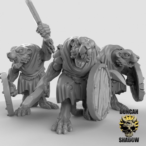 Oferujemy zestaw dziesięciu figurek Vermin Legionaries (Ratfolk with swords and shields od Duncan Shadow), wydrukowanych na drukarce żywicznej.