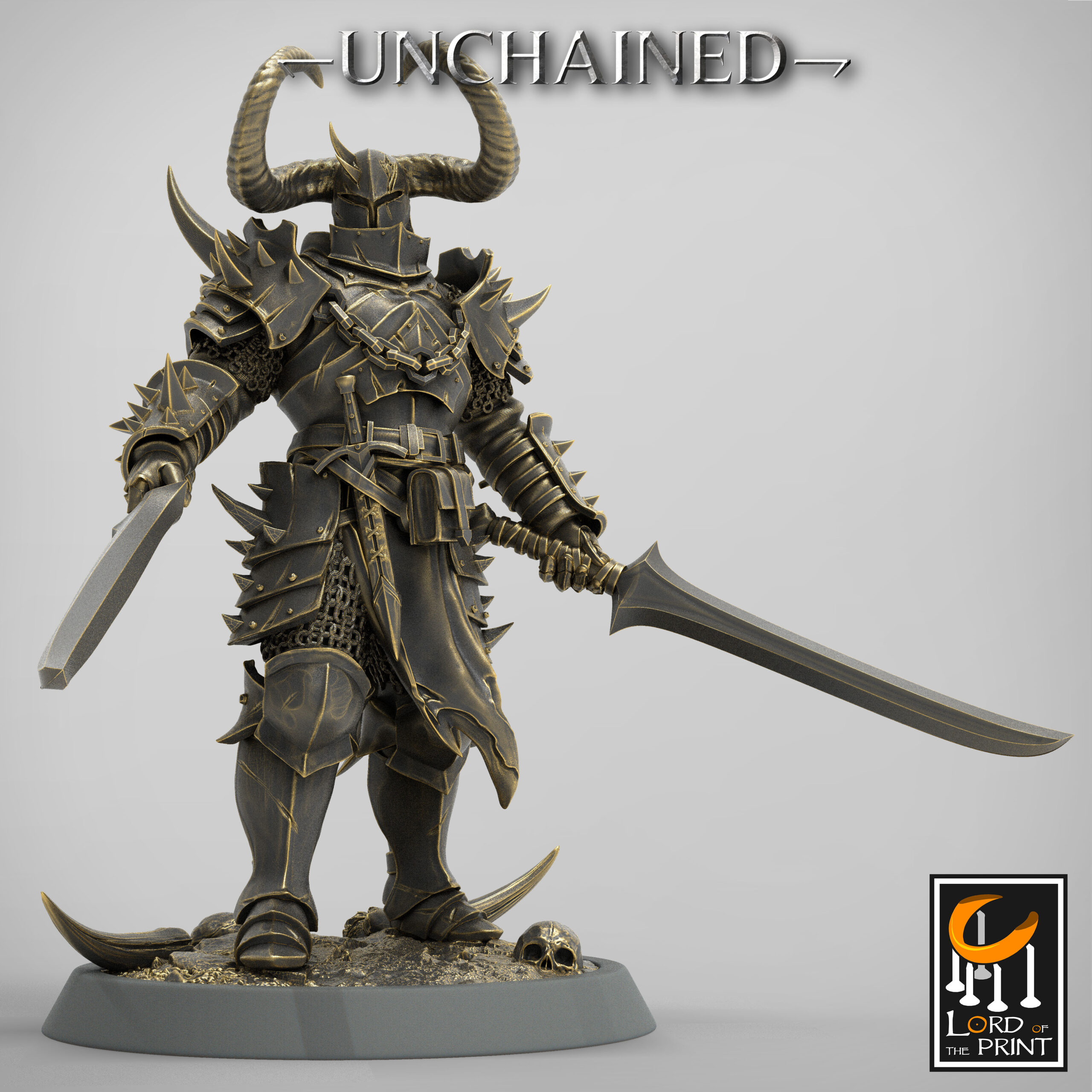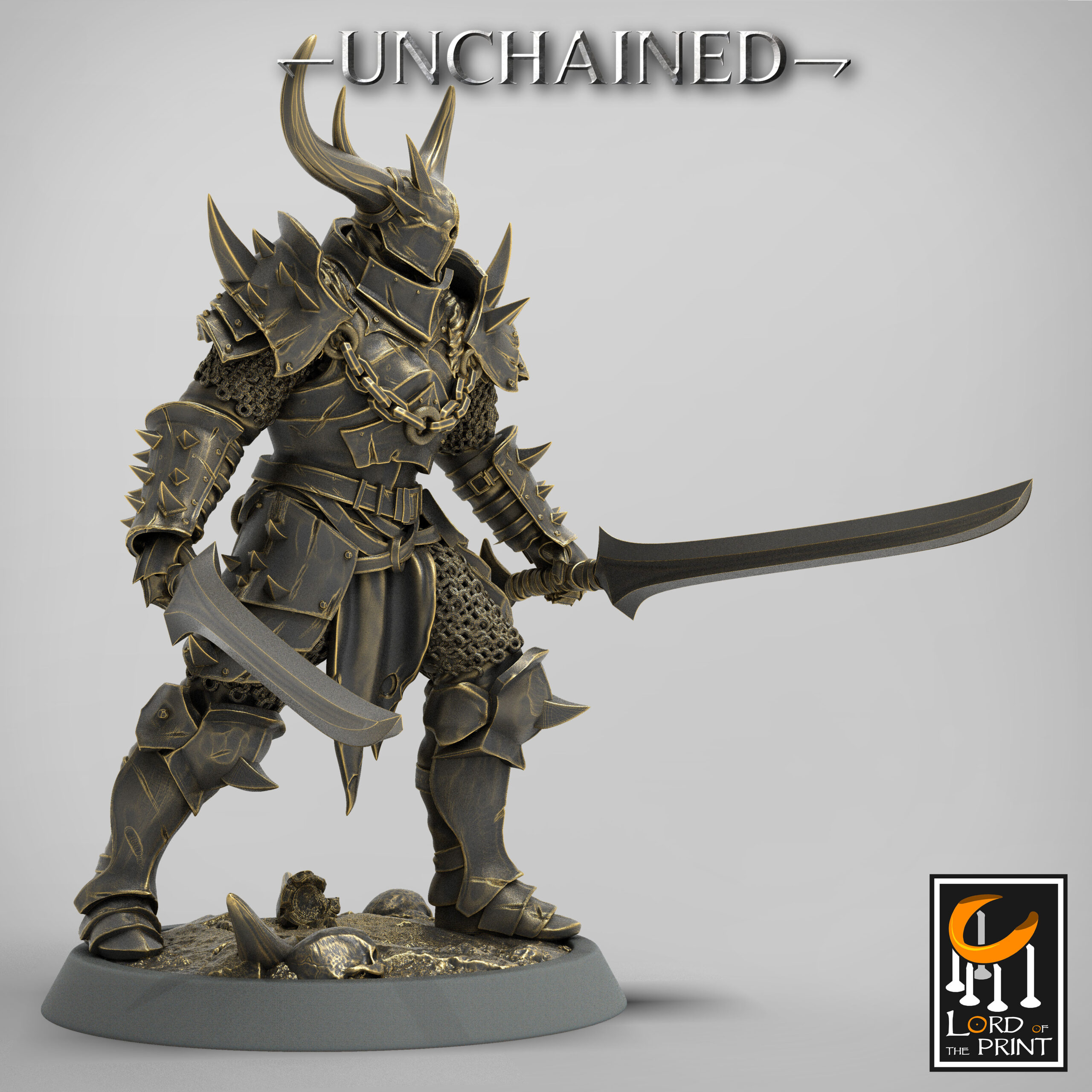 Oferujemy pięć figurek Warriors / Chosen / Fallen with dual swords (Light Fighters od Lord of the Print), wydrukowane na drukarce żywicznej.